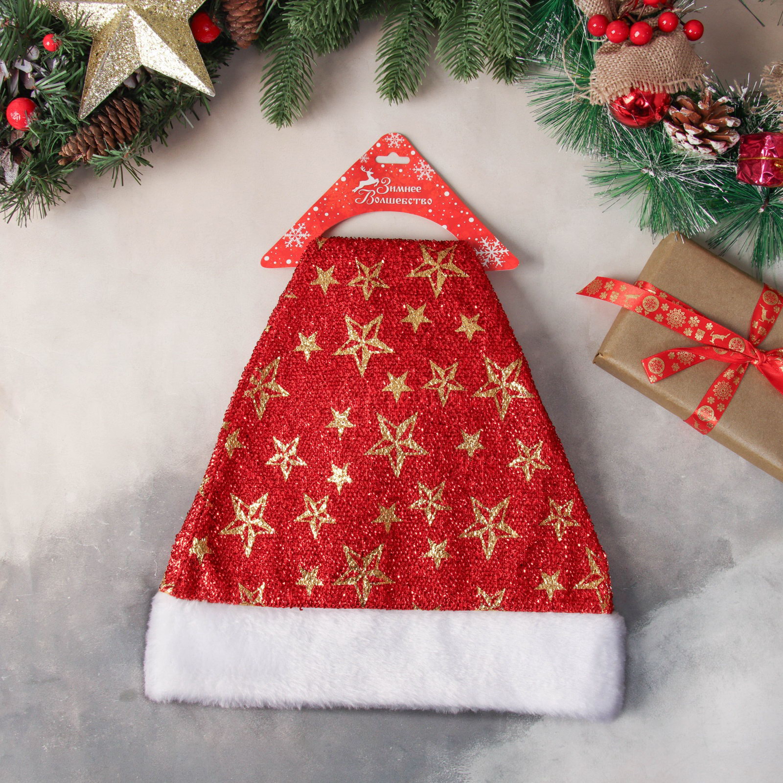 Колпак новогодний "Звёздный момент" 29x37 см, красный, 29x37 см., Зимнее волшебство, Китай