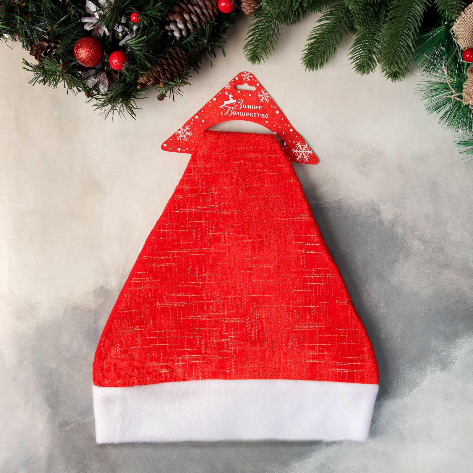Колпак новогодний "Праздничные штрихи" 28x37 см, красный, 28x37 см., Зимнее волшебство, Китай