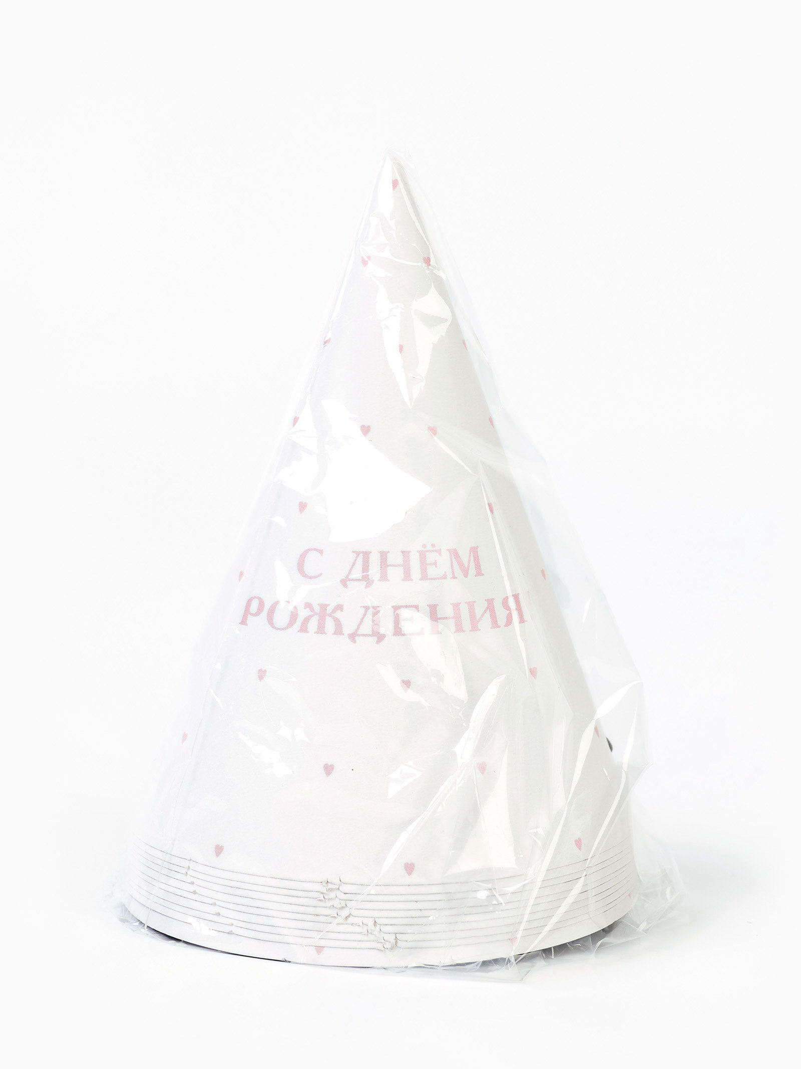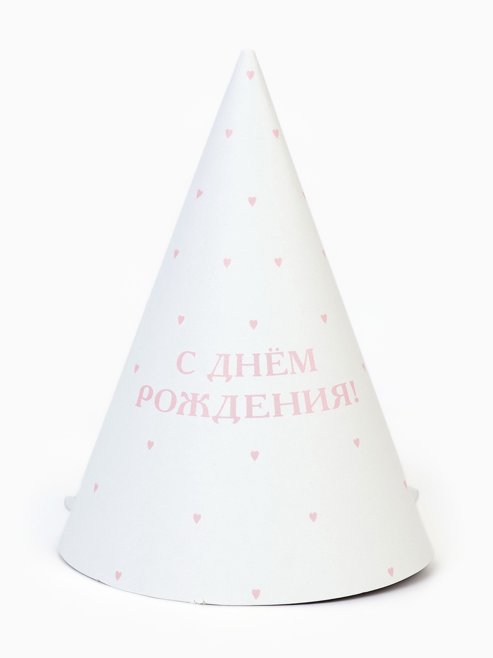 Колпак праздничный бумажный "С Днём рождения", белый, Россия
