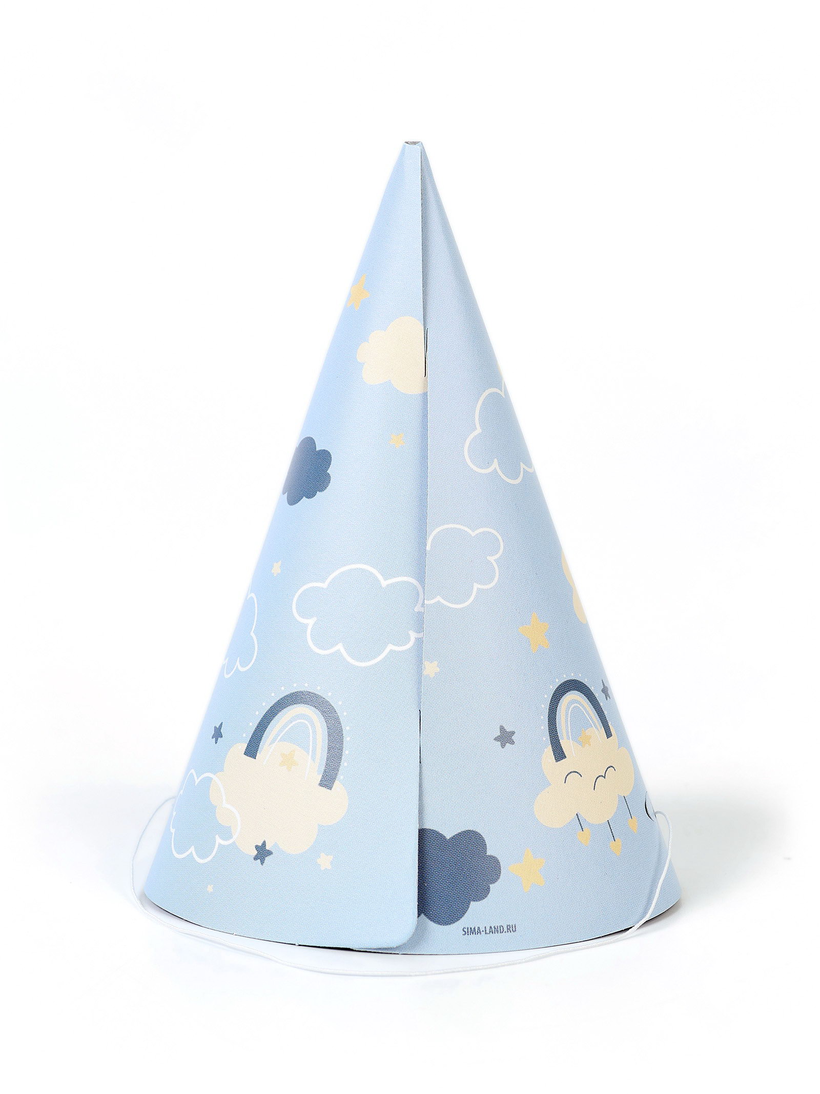 Колпак праздничный бумажный "С Днём рождения", голубой, Россия