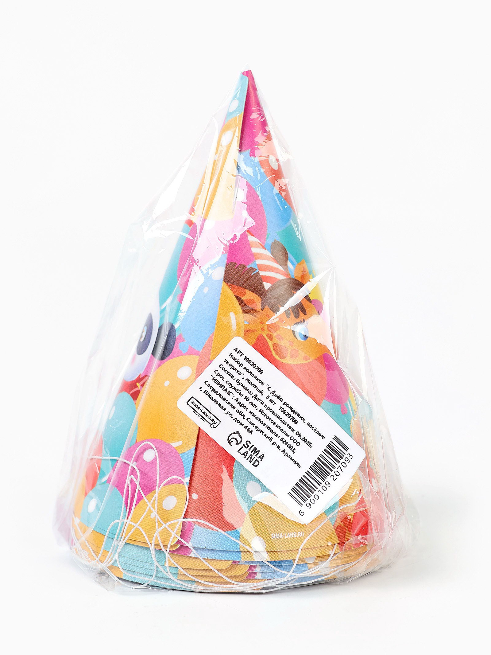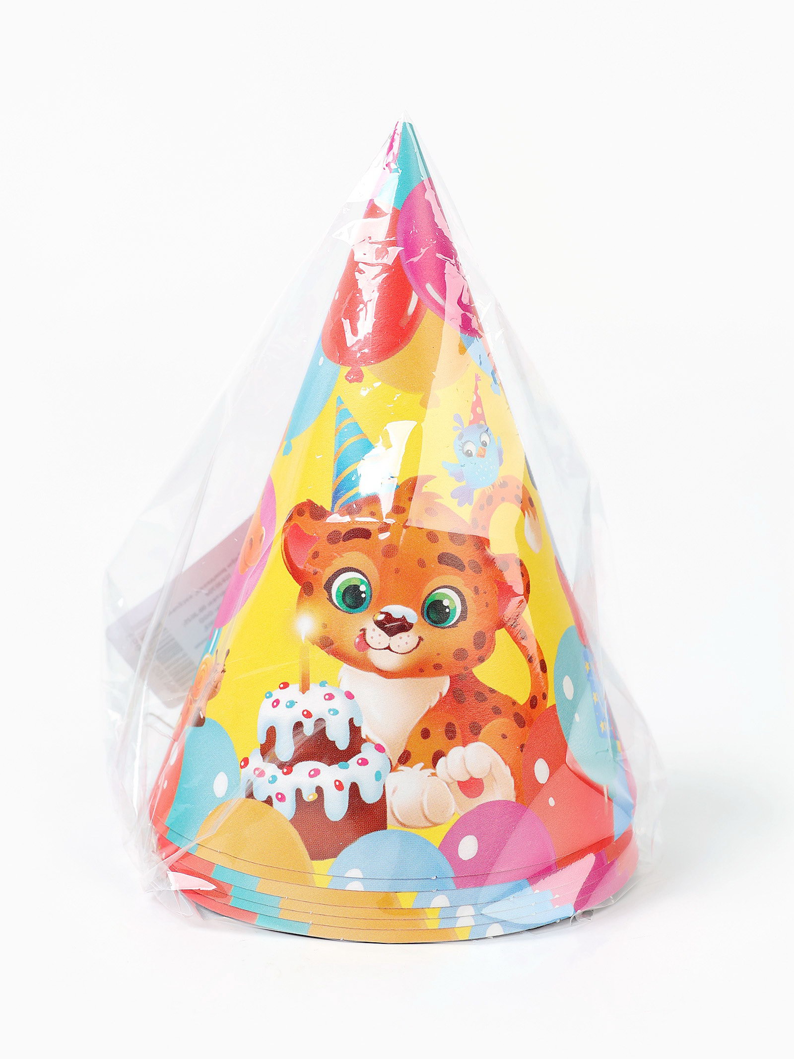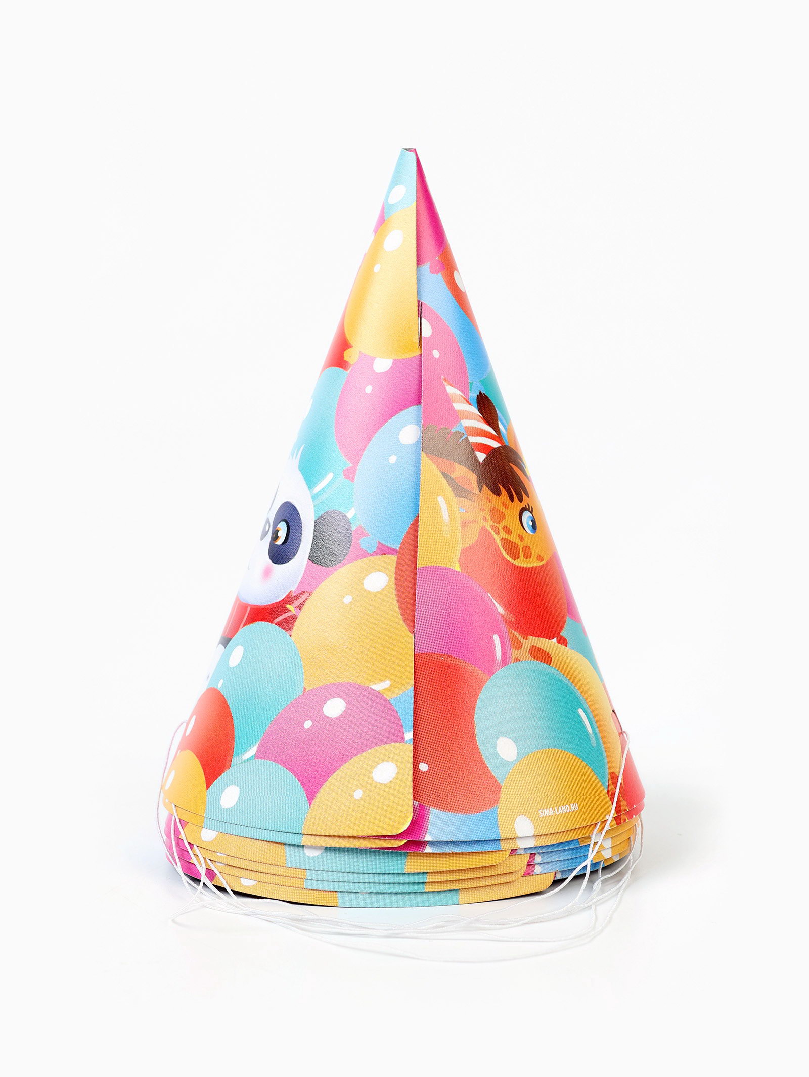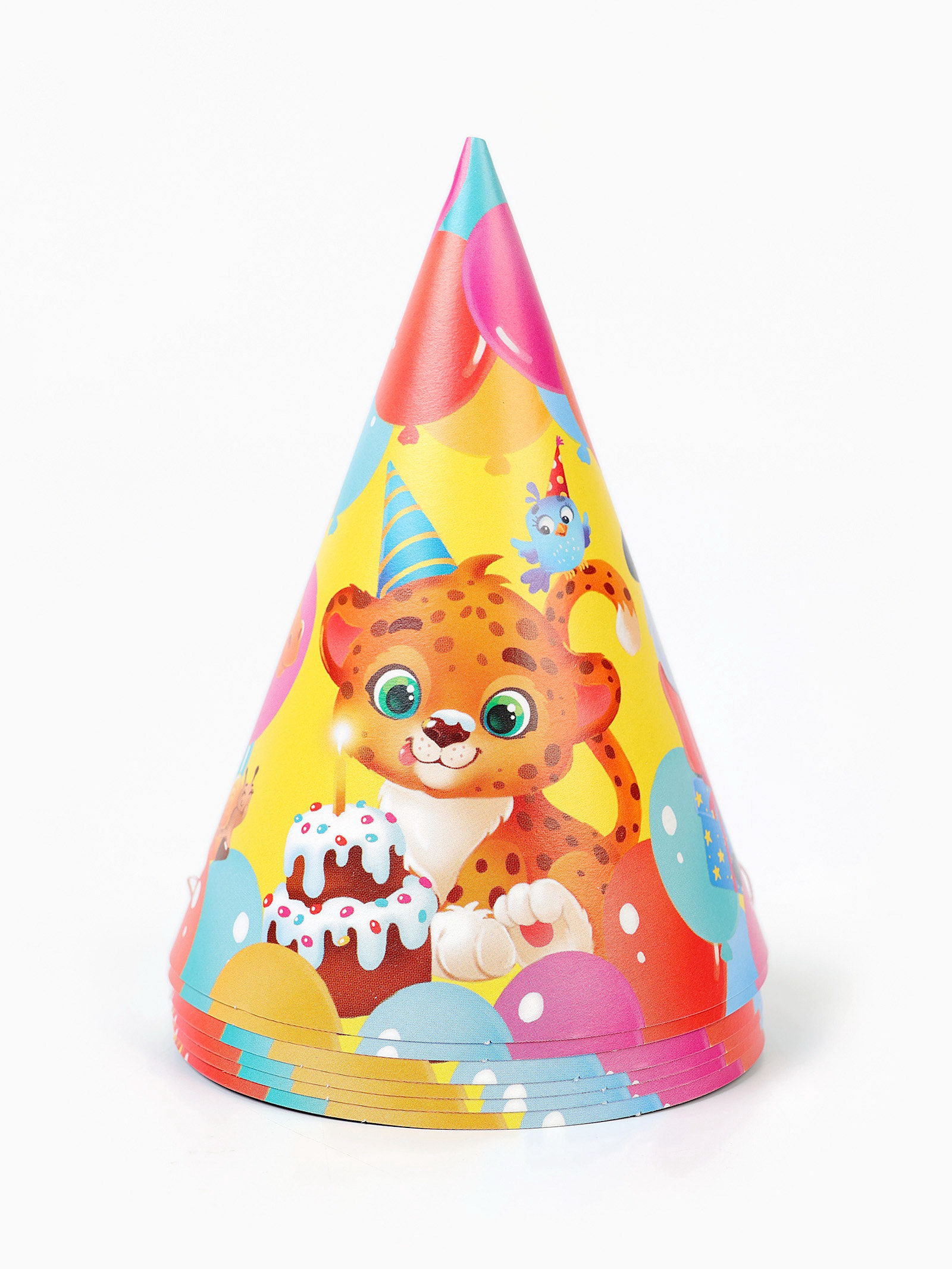 Колпак праздничный бумажный "С Днём рождения, весёлые зверята", 6 шт., Россия