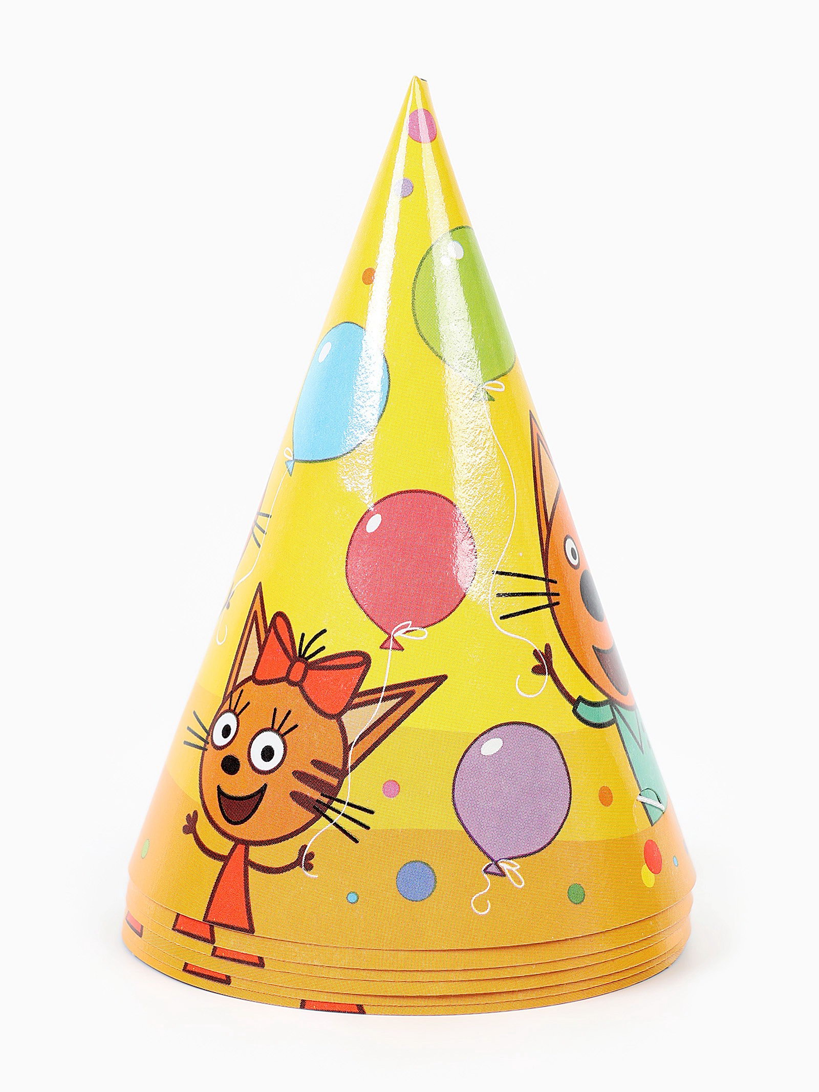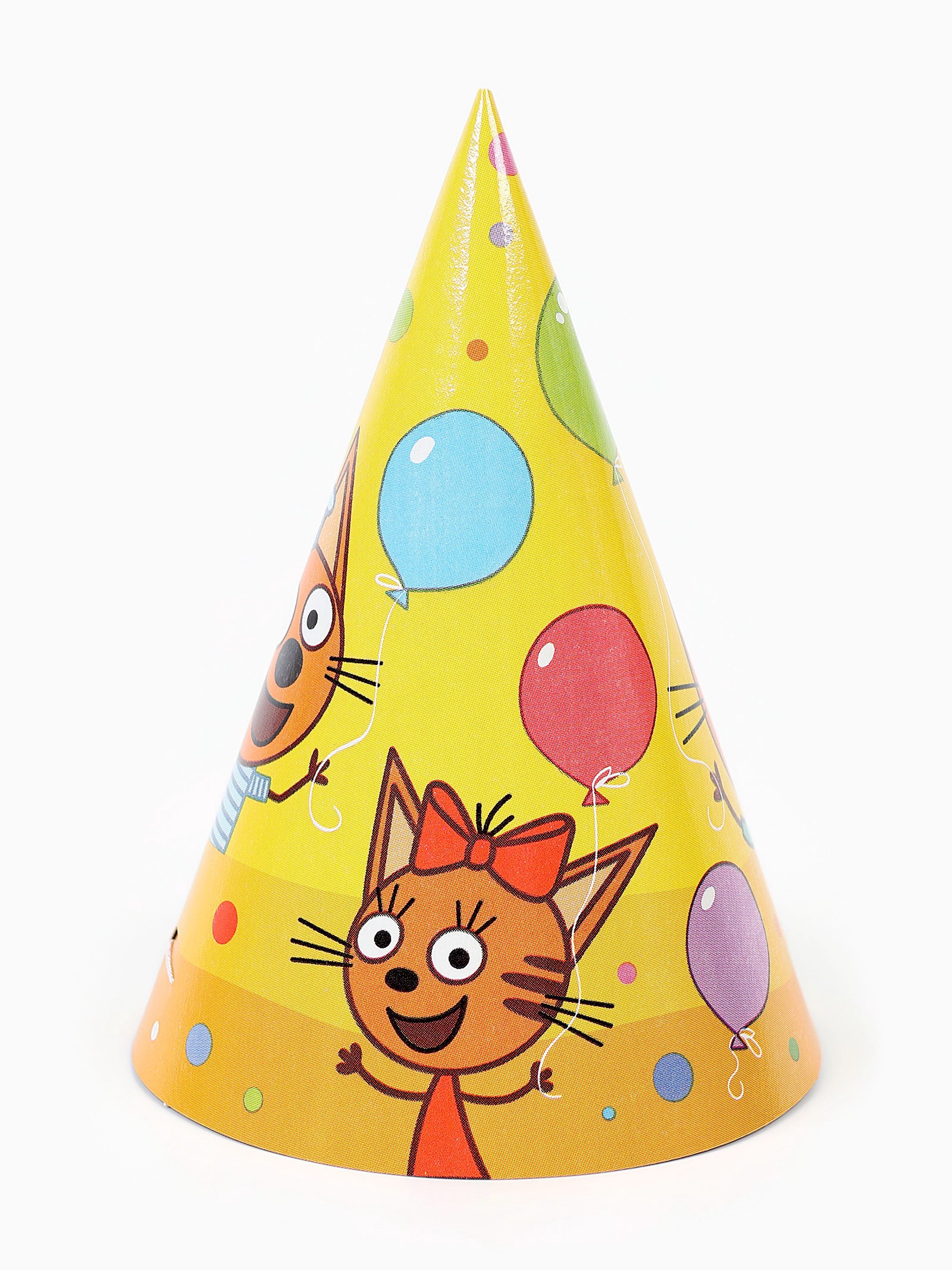 Колпак бумажный "Веселый День рождения", Три Кота, 6 шт, Дон Баллон, Россия