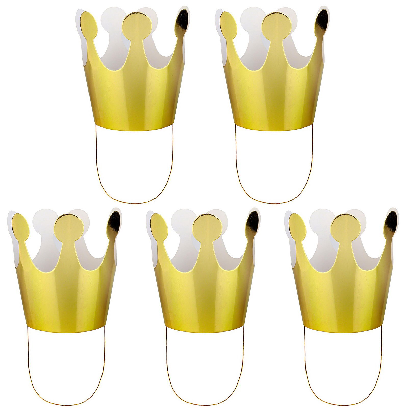 Корона бумажная золотая, 6.5х10 см, 5 шт, Волна Веселья, Китай