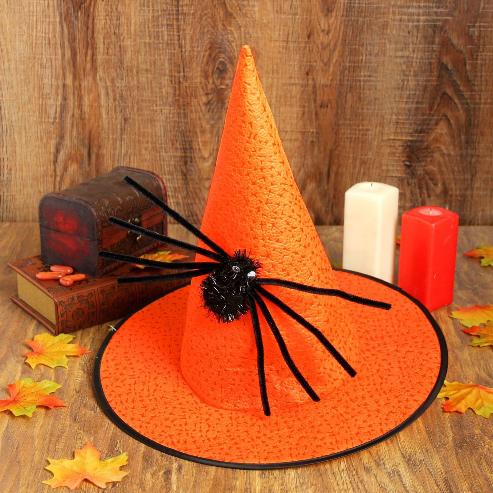 Карнавальная шляпа "Конус", с пауком, цвет оранжевый, 38x35x38 см., Страна Карнавалия, Китай