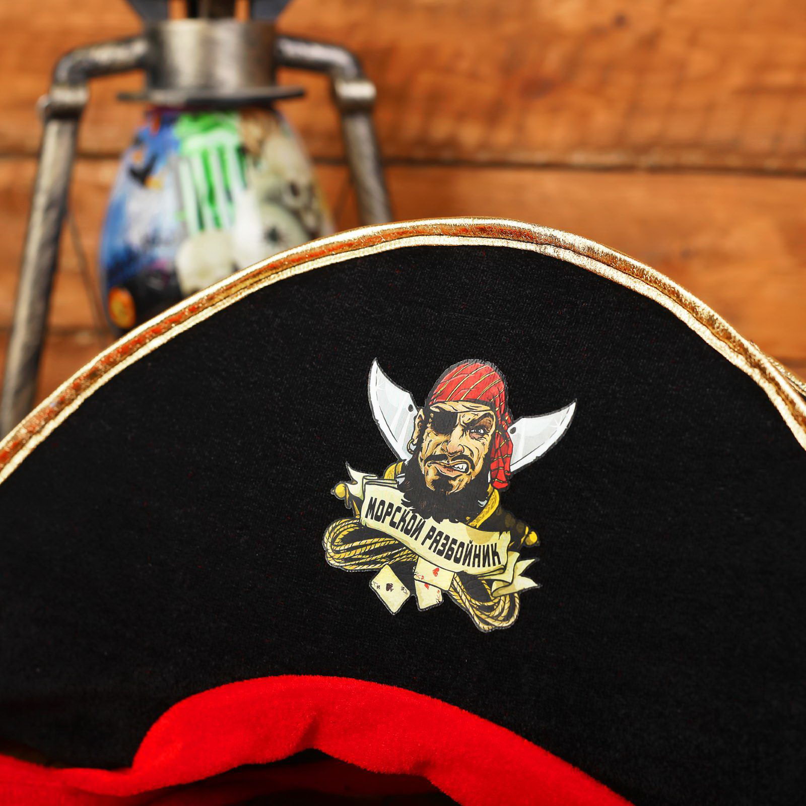 Шляпа пиратская "Морской разбойник", взрослая, р-р. 56-58, 10x45x16.5 см., Страна Карнавалия, Китай