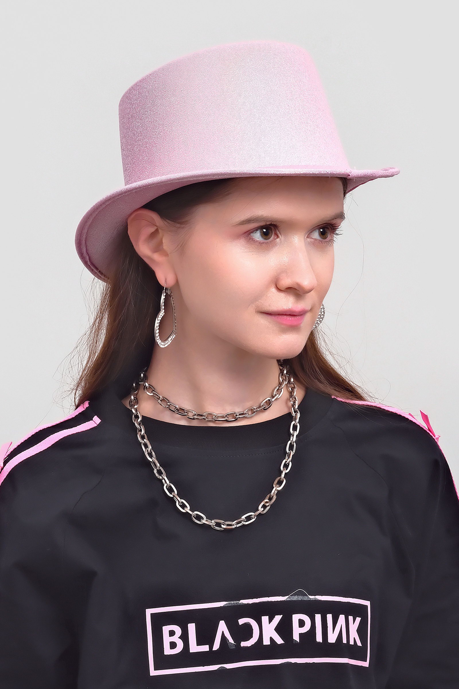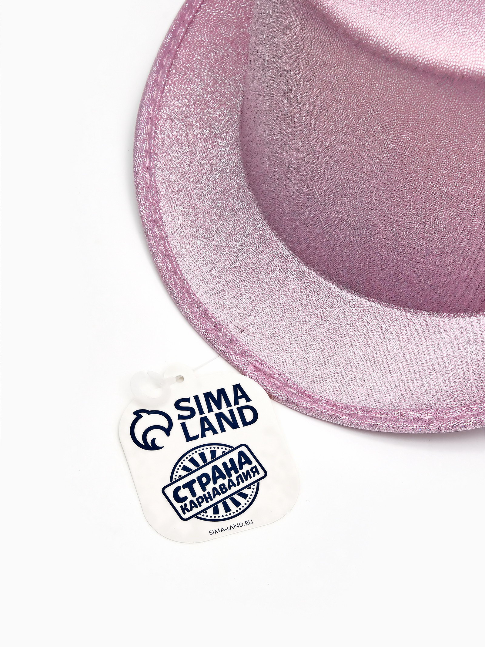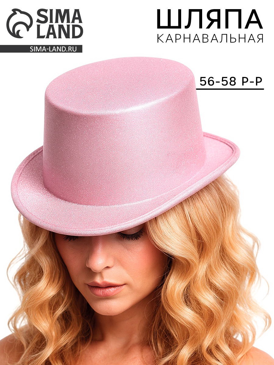 Карнавальная шляпа "Цилиндр", розовая с блёстками, р-р. 56-58, 24x28x10 см., Страна Карнавалия, Китай