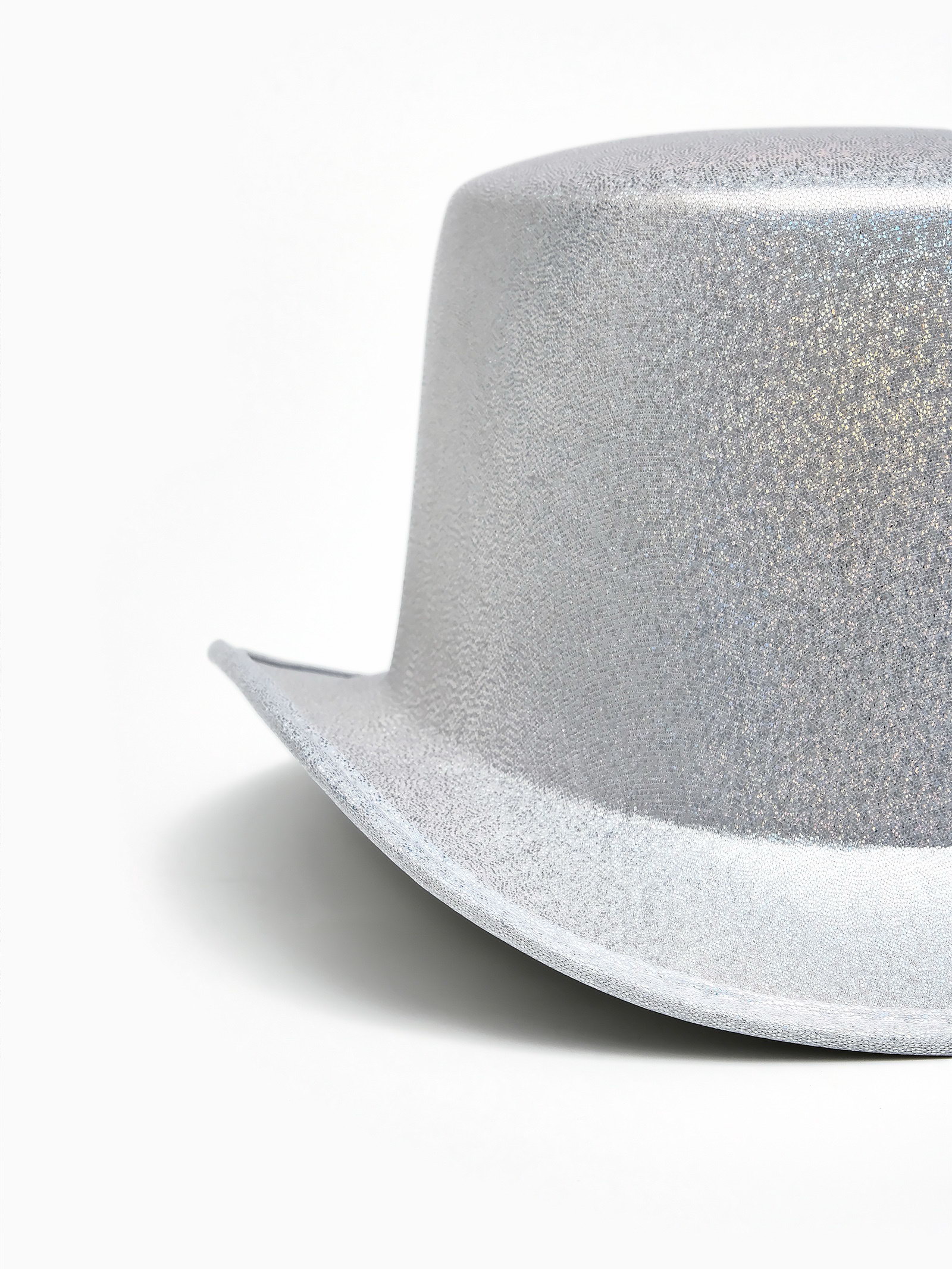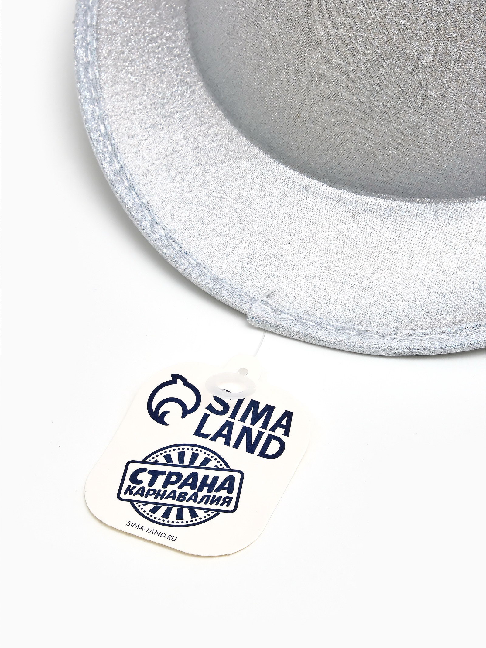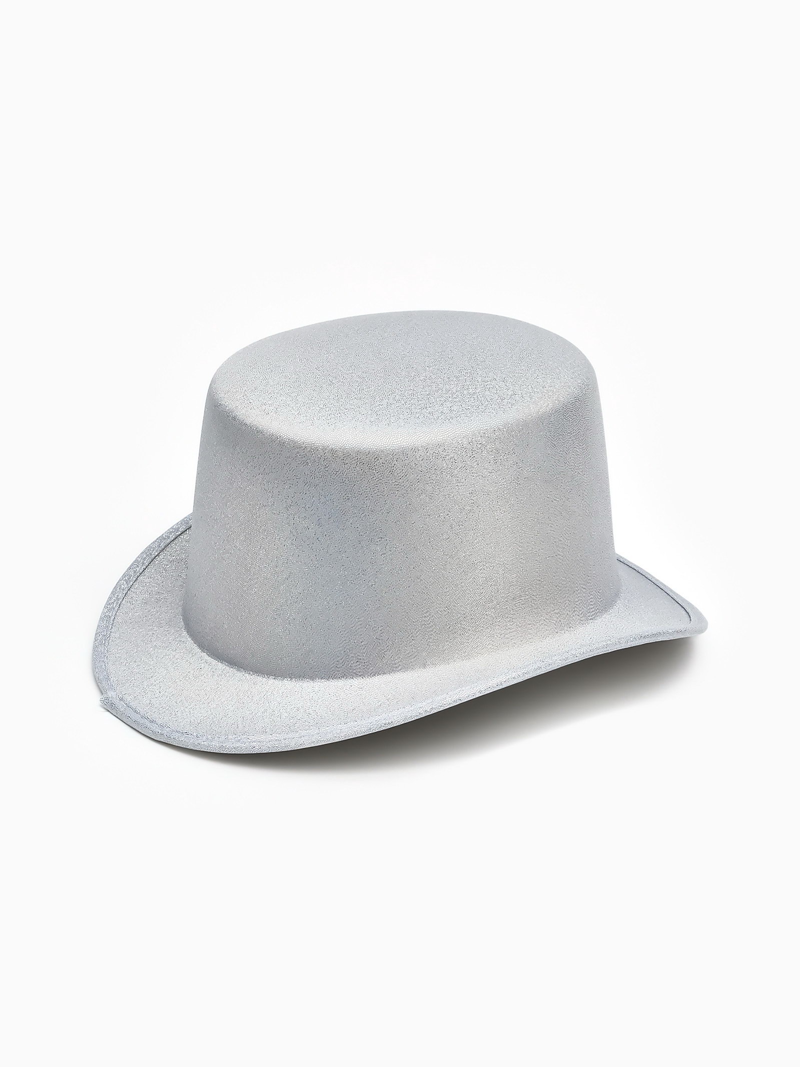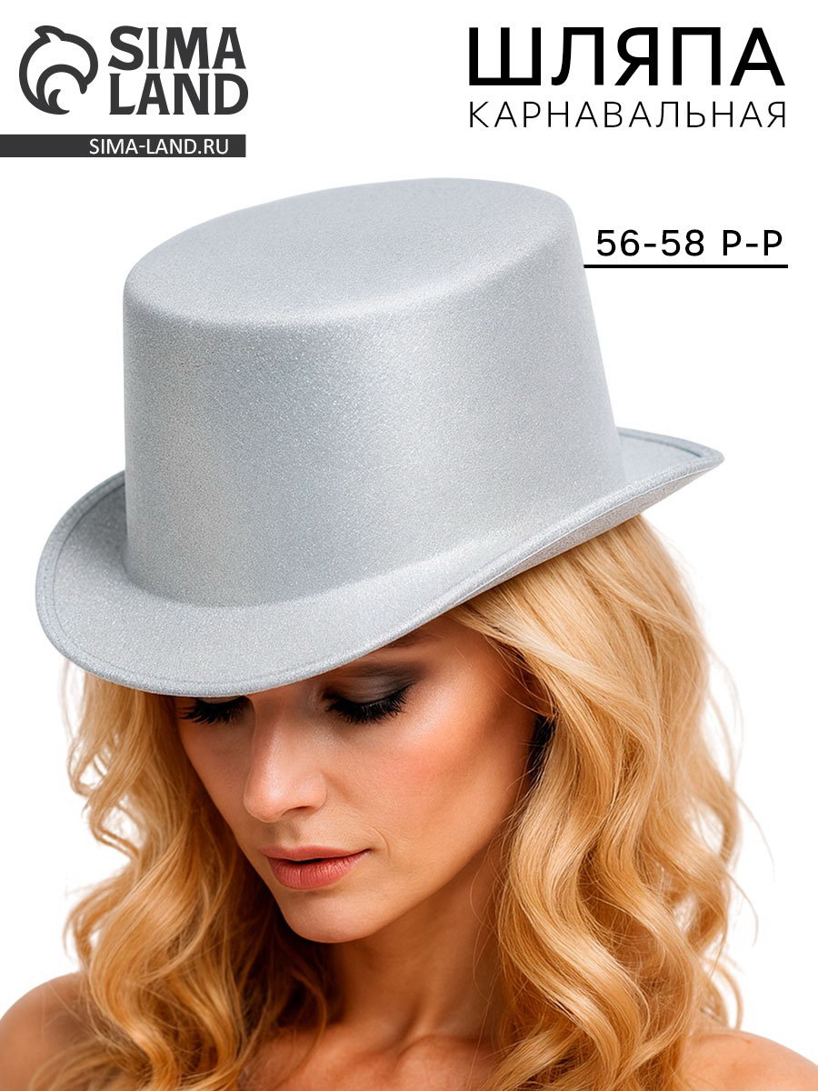 Карнавальная шляпа "Цилиндр", серебряная с блёстками, р-р. 56-58, 24x28x10 см., Страна Карнавалия, Китай