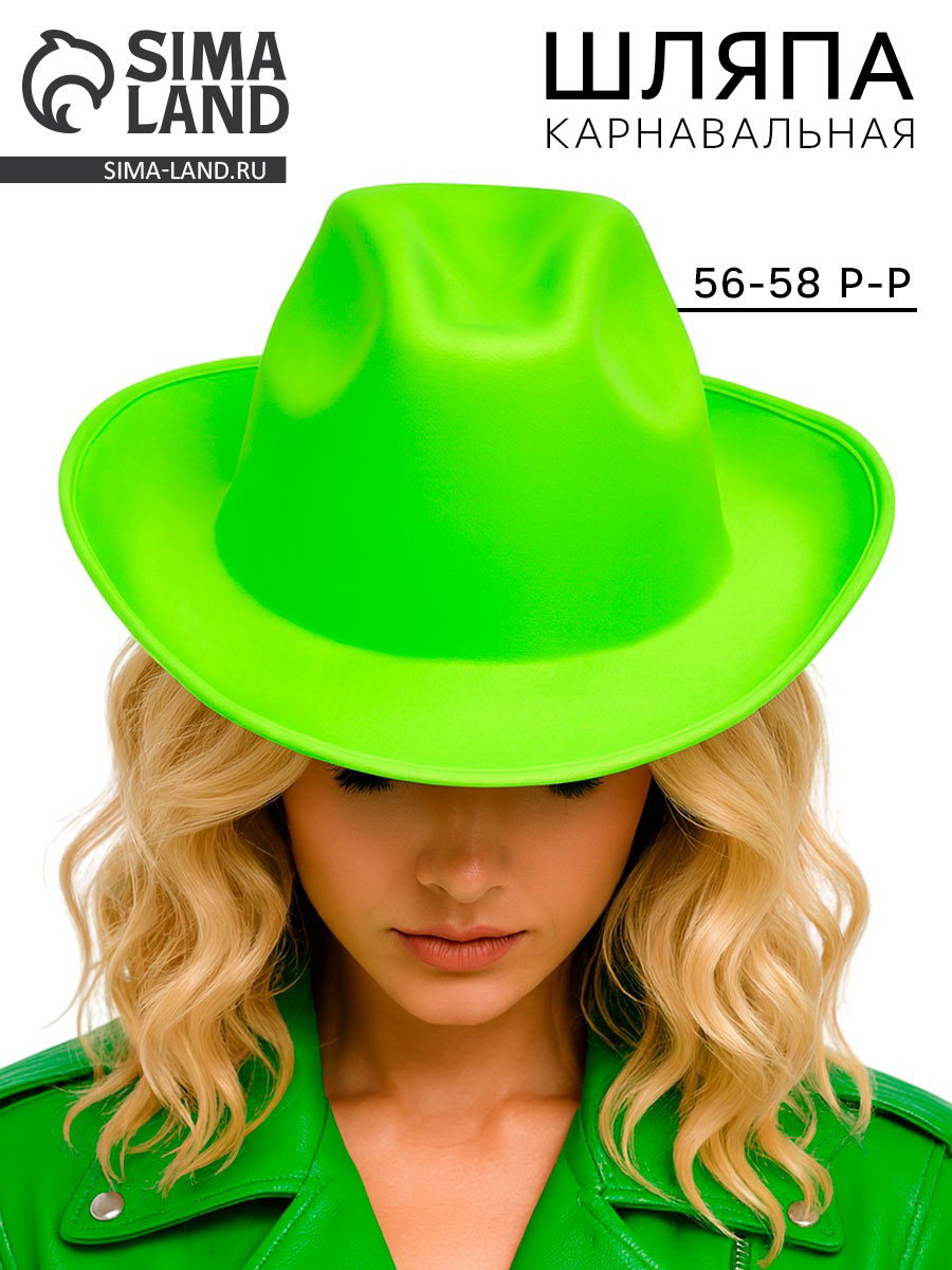 Карнавальная шляпа "Неон", зелёная, р-р. 56-58, 25x34x12 см., Страна Карнавалия, Китай