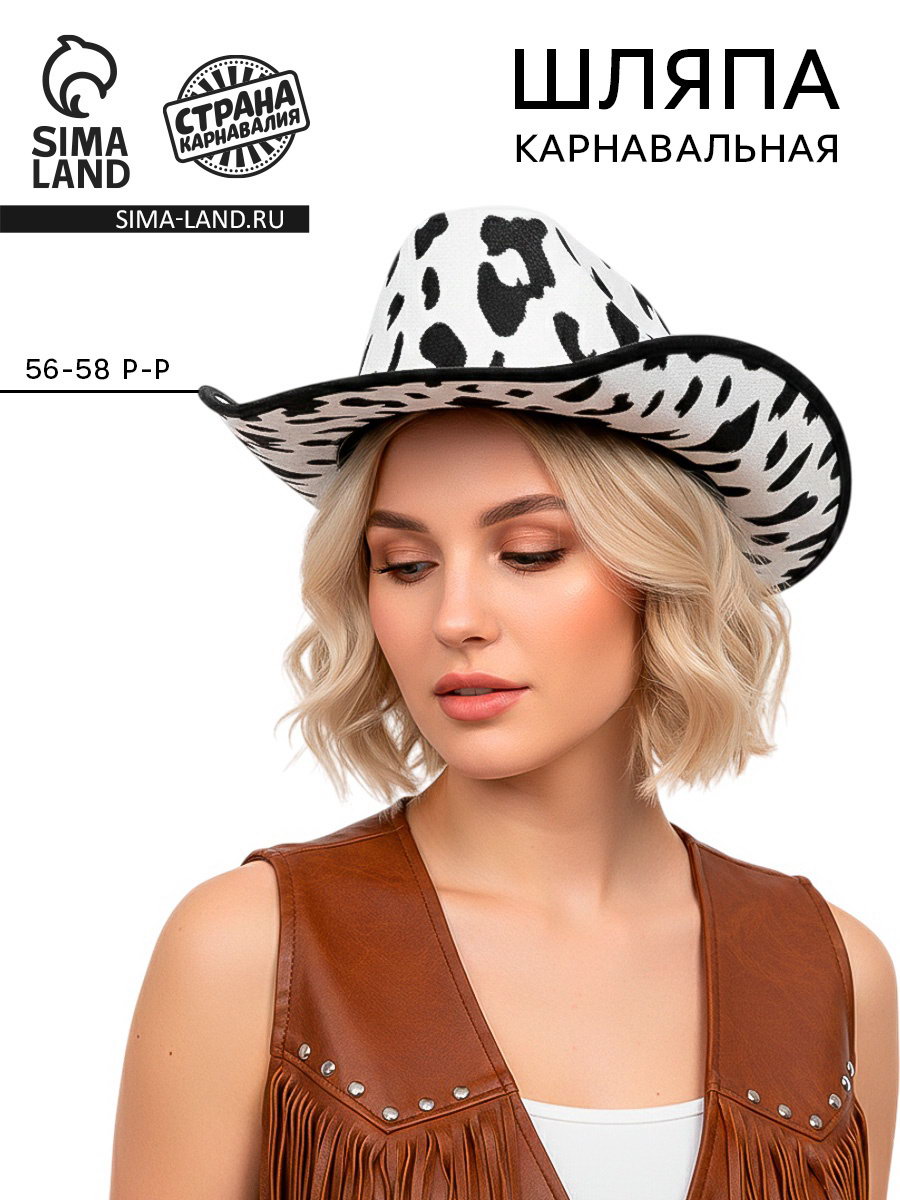 Цвет: Белый, Чёрный Размер упаковки: 28 x 13 x 36 см. tnved: 6505009000 Честный знак: Честный знак Размер, см: 56-58 Возраст: Для взрослых Тематика: Без тематики Вид: Шляпы Вид шляпы: Ковбойские | ||