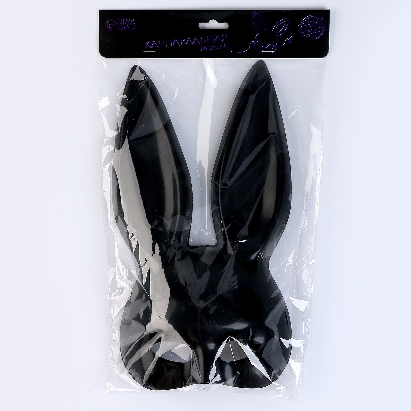 Маска "Зайка" чёрная, матовая, 25x30x1 см., Страна Карнавалия, Китай
