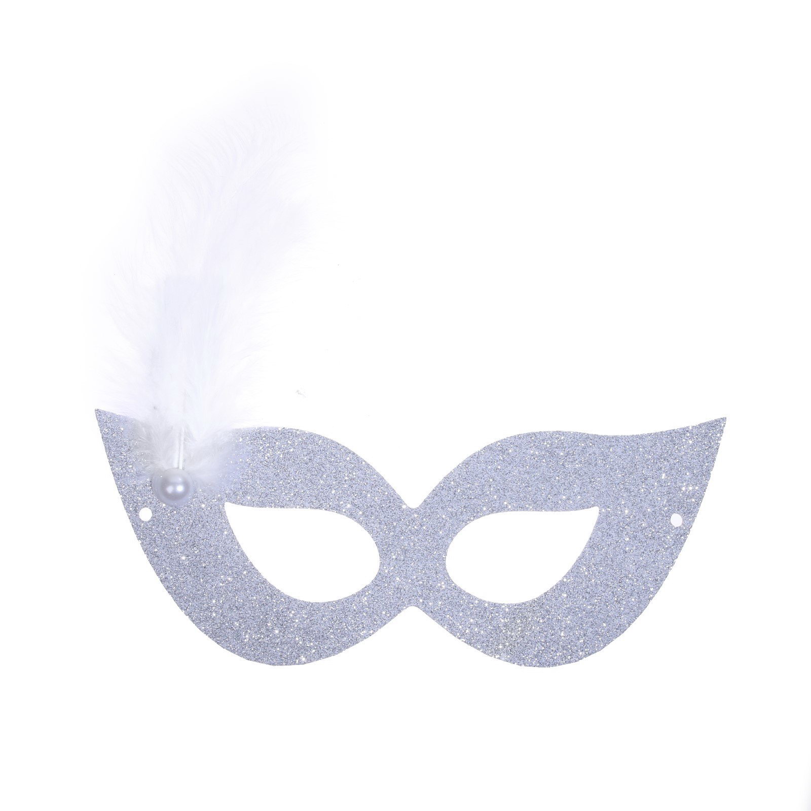 Карнавальная маска с пером, серебряная, Россия