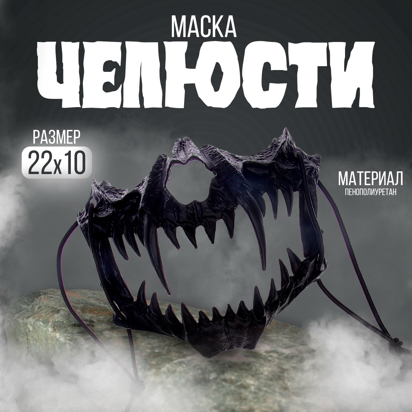 Карнавальная маска "Челюсти", цвет чёрный, Китай