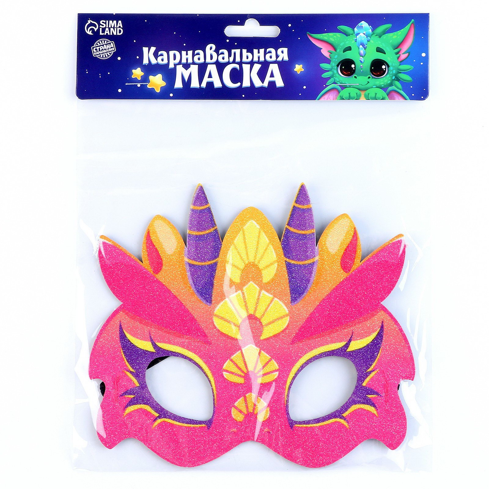 Маска карнавальная "Милый дракон", фетр с блёстками, 16x18x0.2 см., Страна Карнавалия, Китай