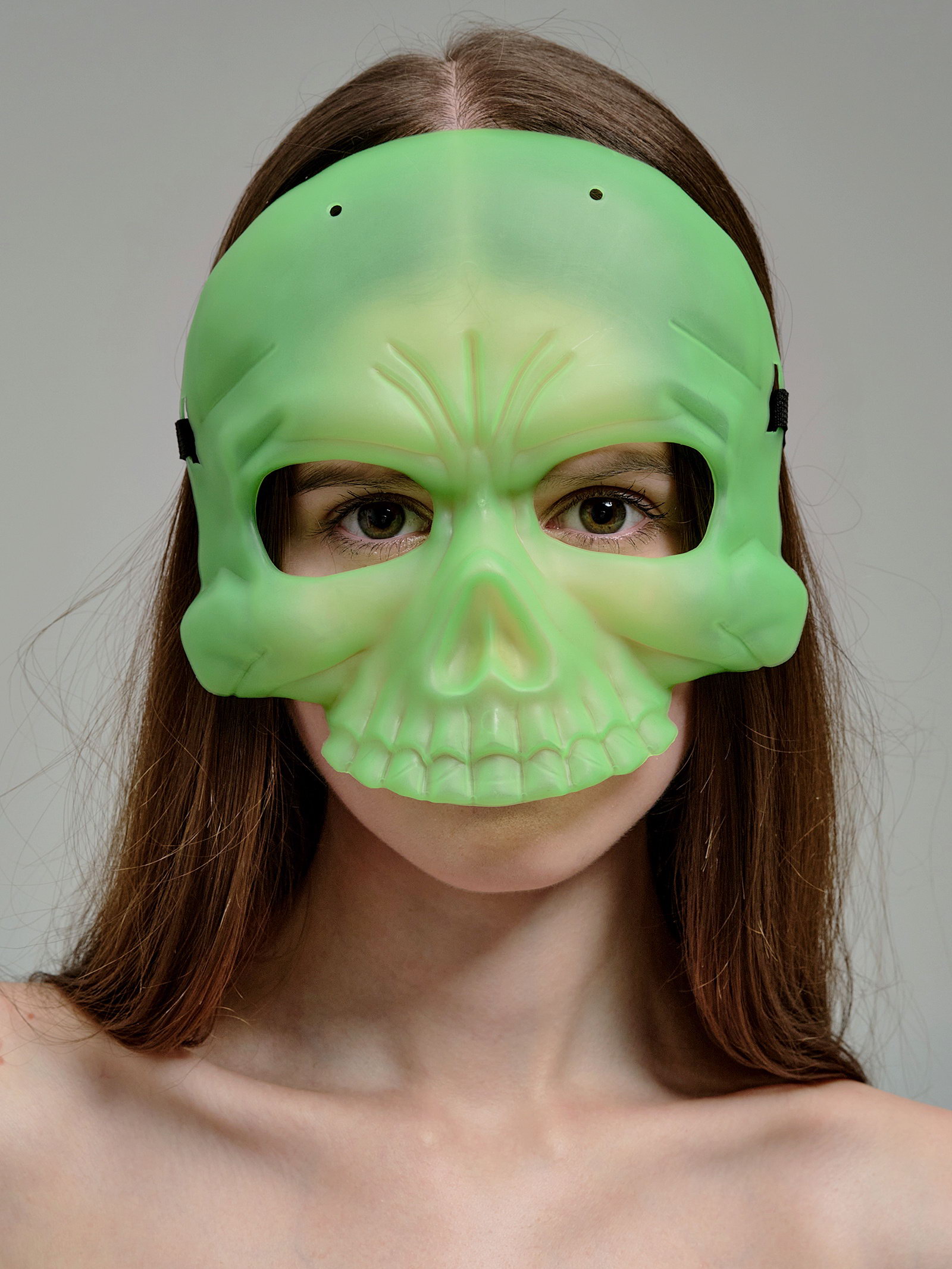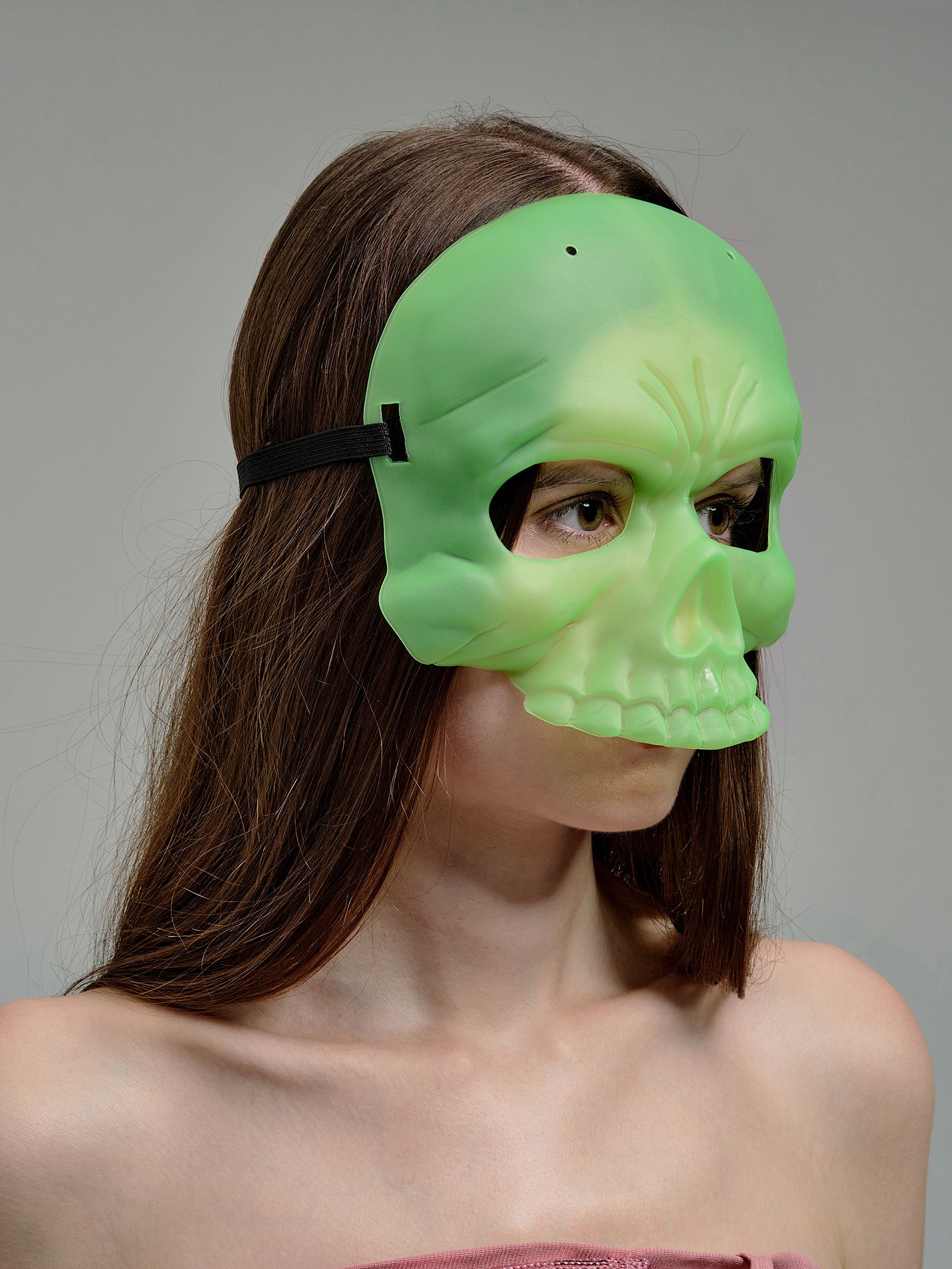 Карнавальная маска "Череп" светится в темноте, 17x17x0.3 см., Китай