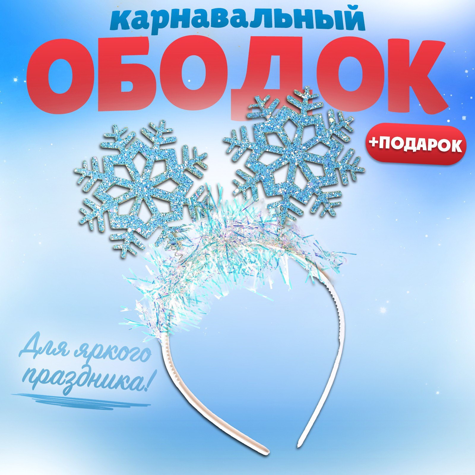 Ободок для волос карнавальный "Снежинка" + подарок, 20x2x25 см., Страна Карнавалия, Китай