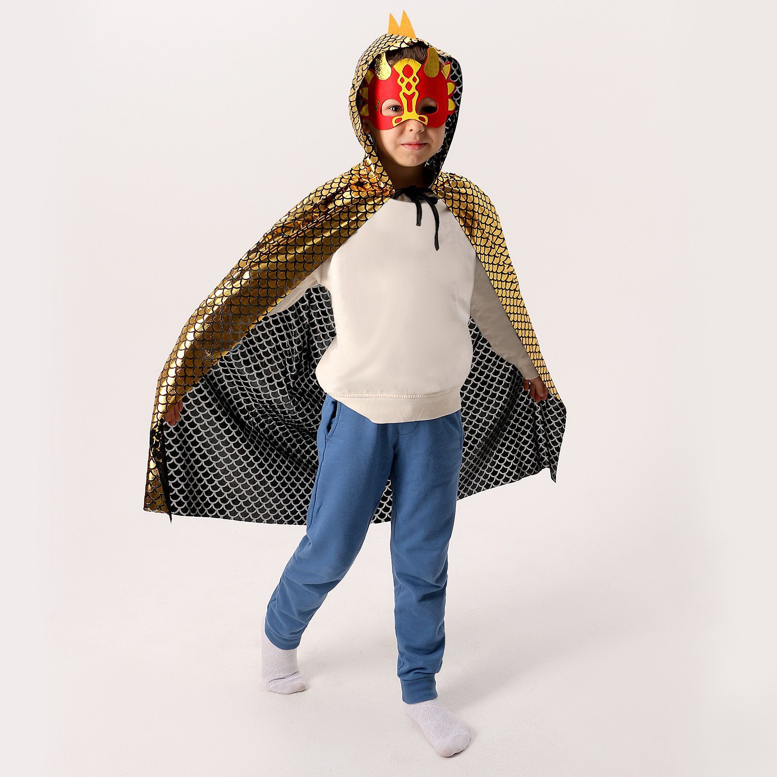 Карнавальный набор "Золотой дракон", плащ и маска, 20x30x1 см., Волшебная маска, Китай
