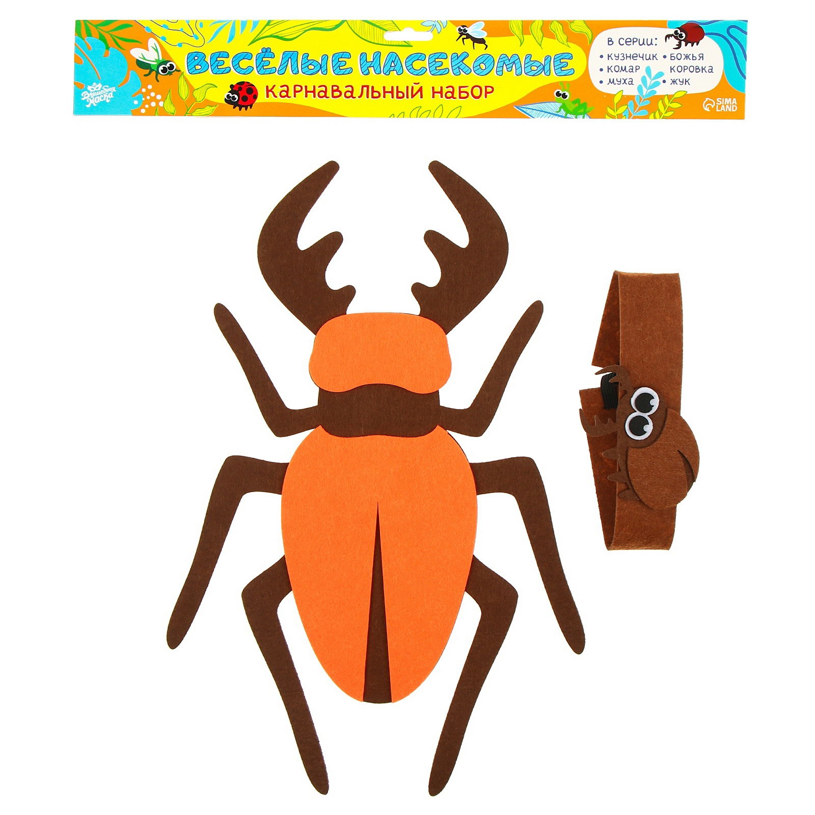 Карнавальный набор "Весёлые насекомые": повязка и жук из фетра, 3–7 лет, 27.2x40x1 см., Волшебная маска, Китай