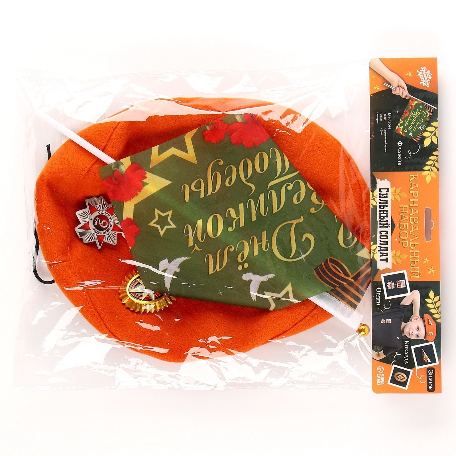 Набор военного "Сильный солдат" оранжевый берет, размер 54, значок, флажок, Волшебная маска, Китай