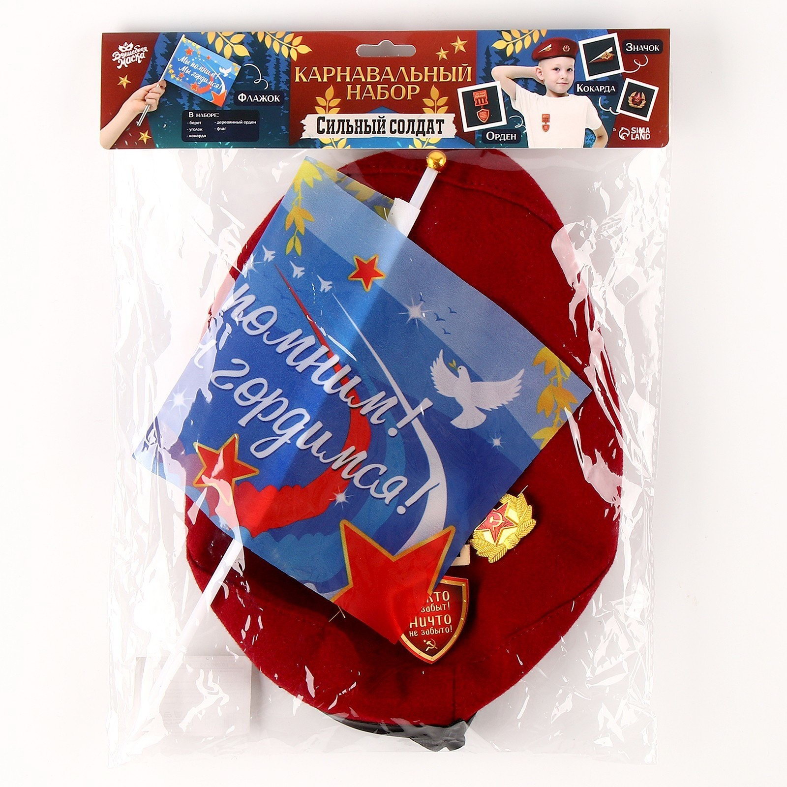 Набор военного "Сильный солдат" красный берет, размер 52 - 54, значок, флажок, Волшебная маска, Китай