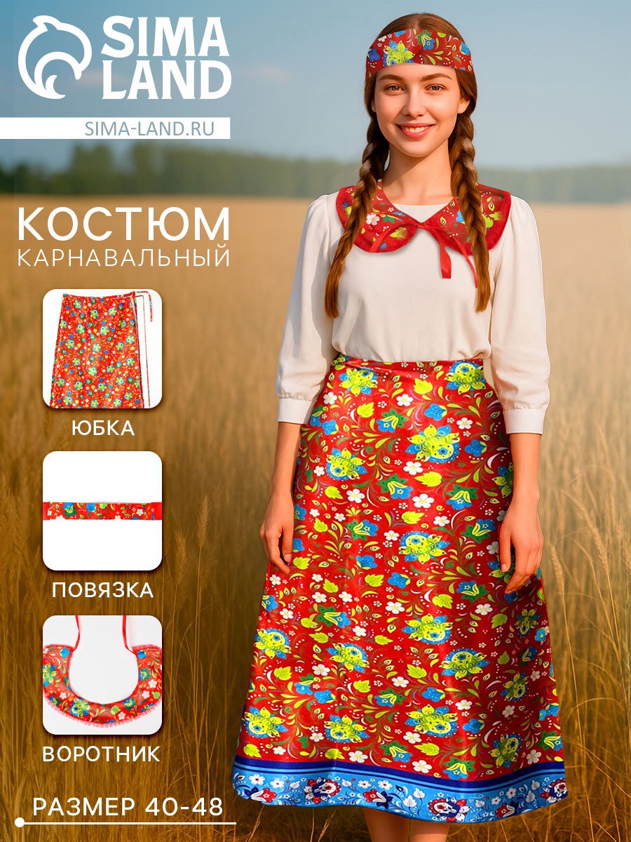 Карнавальный набор "Народная краса": юбка р-р 40-48, воротник, повязка, цвет красный, 25x20x1 см., Волшебная маска, Китай