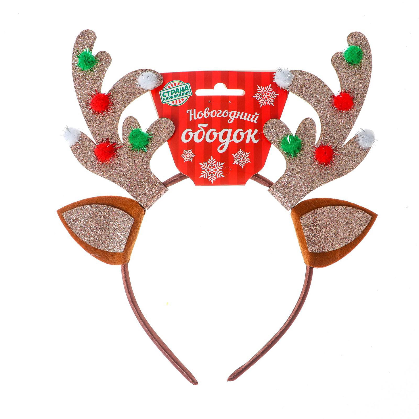 Ободок новогодний карнавальный "Рожки", МИКС, 19.5x22x1 см., Страна Карнавалия, Китай