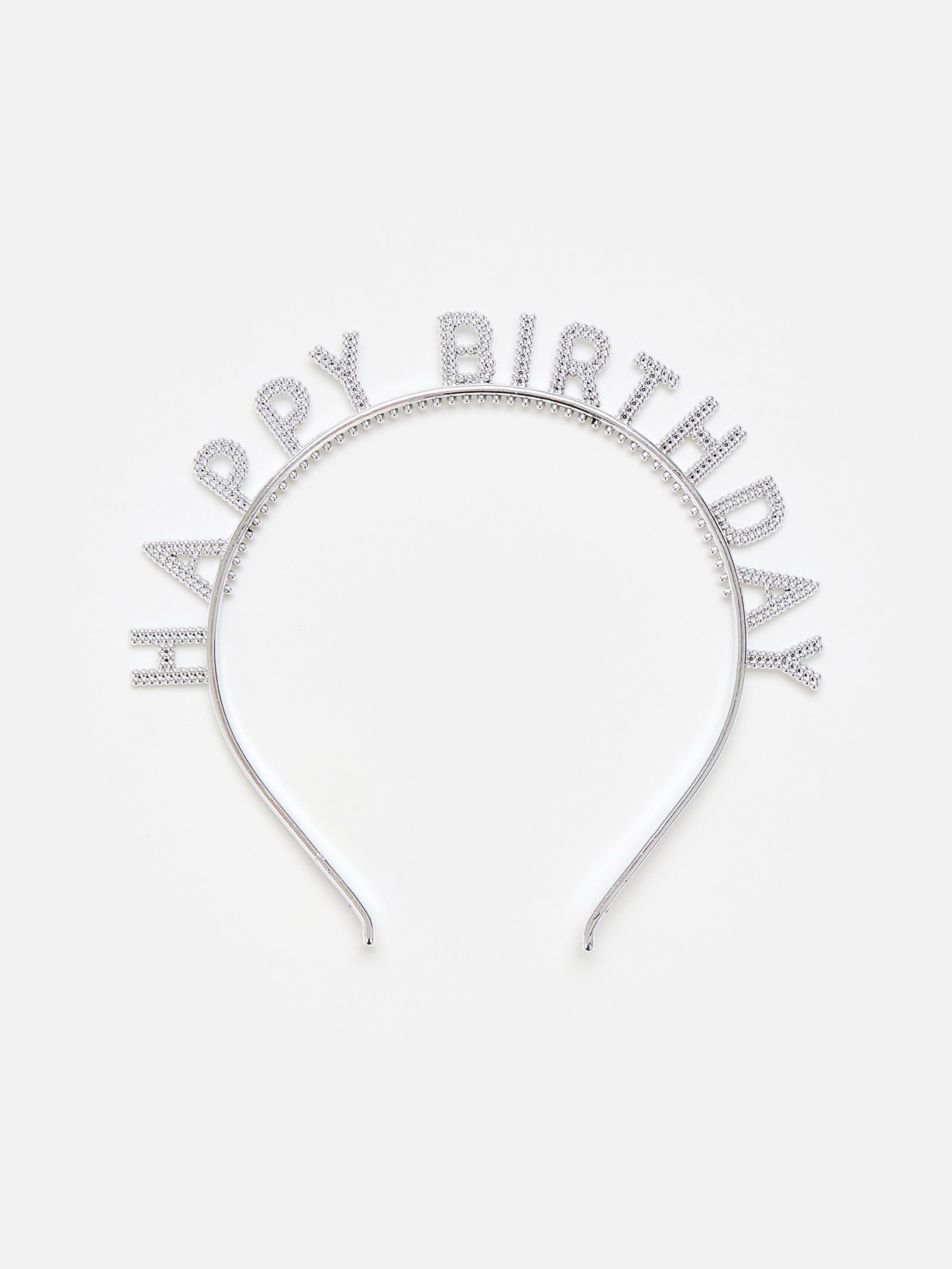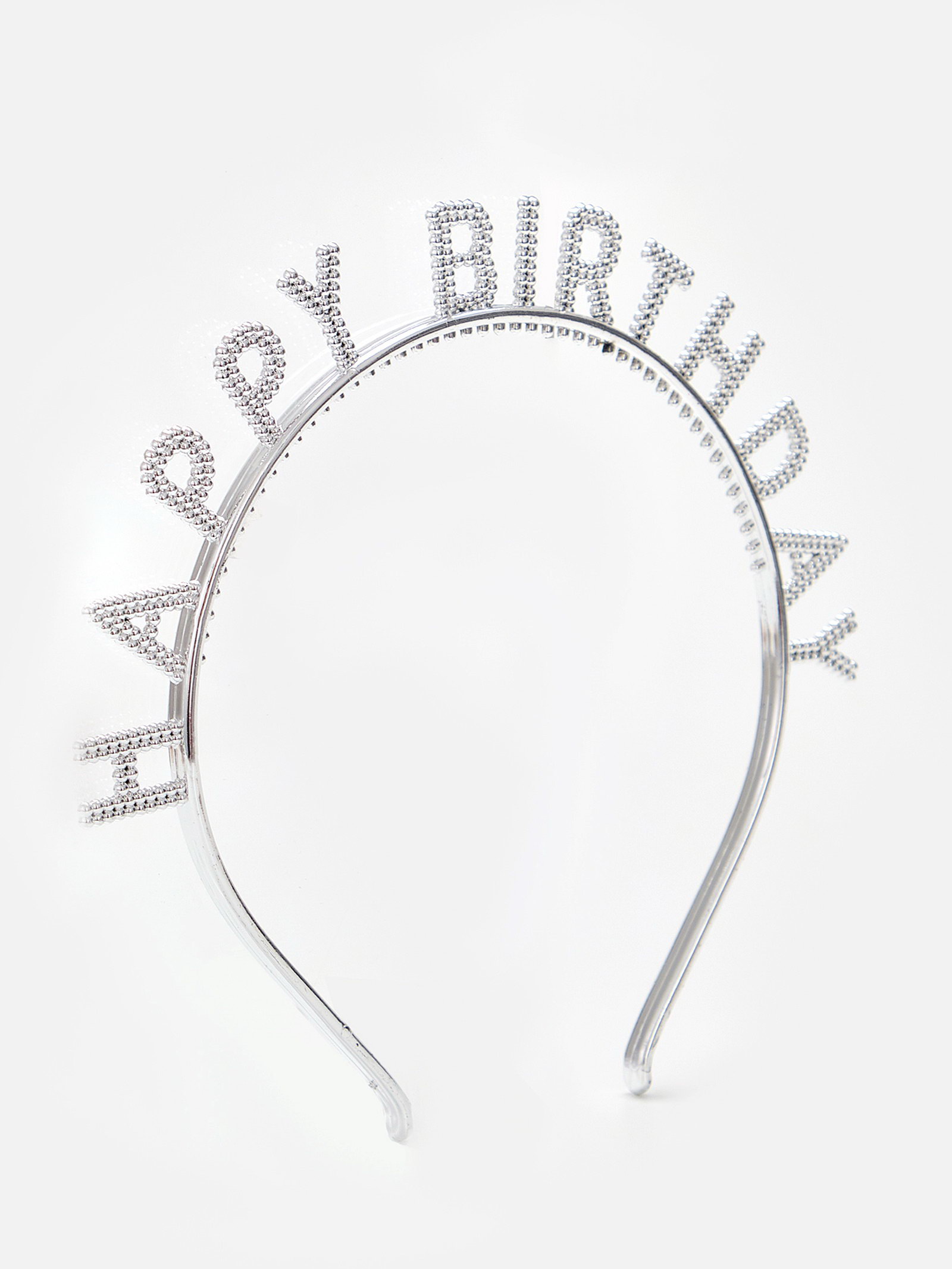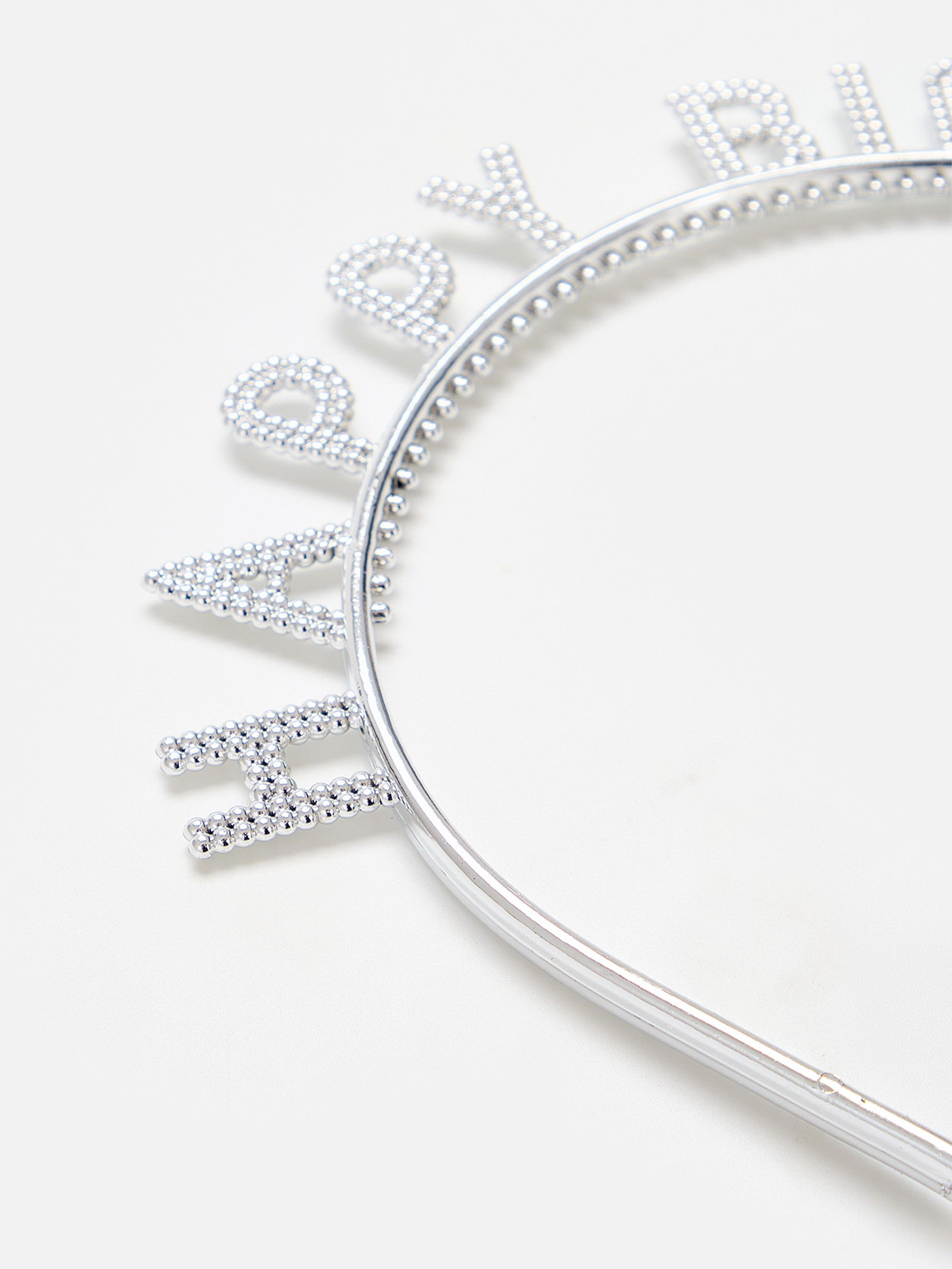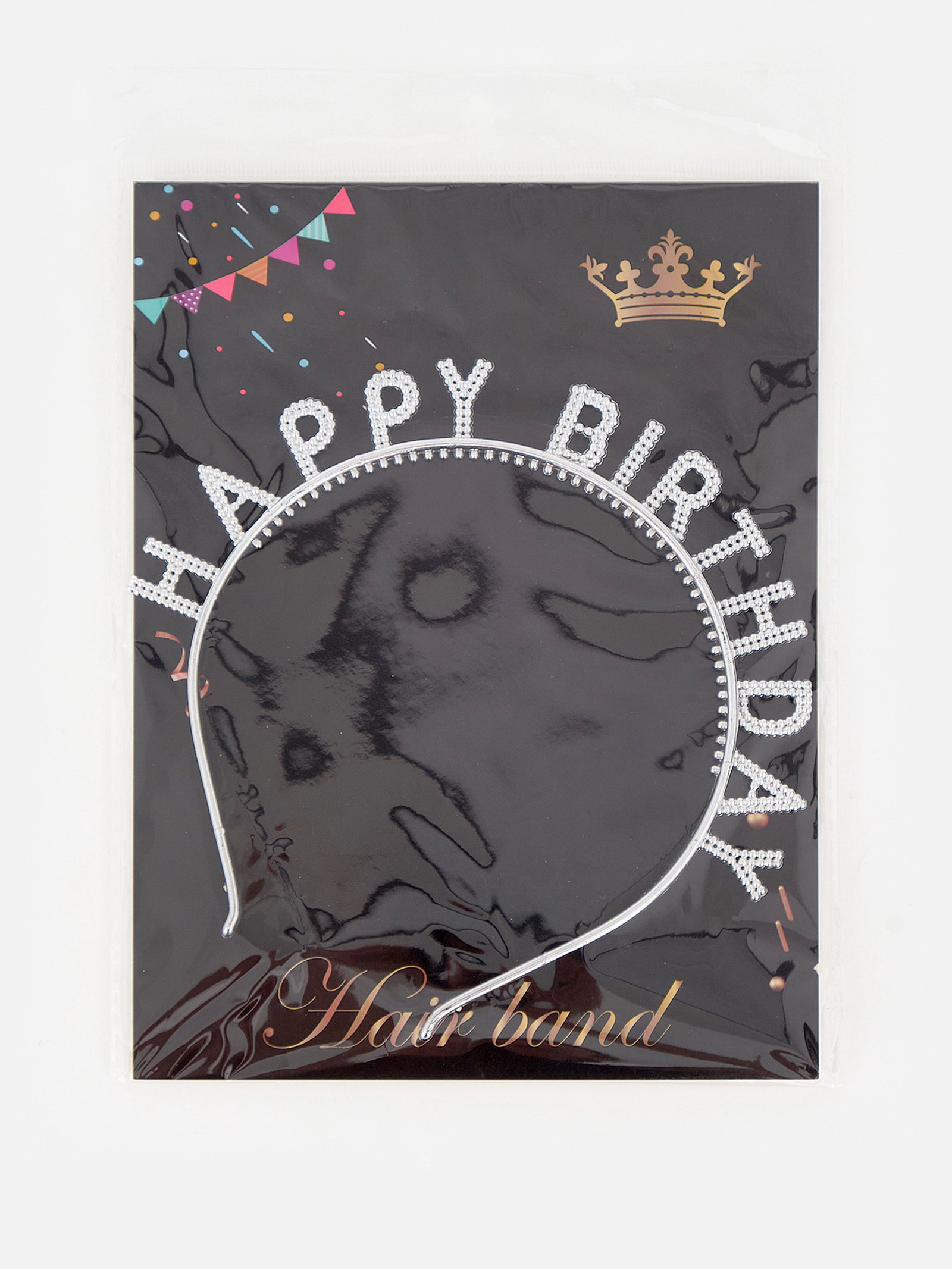 Ободок карнавальный "Happy birtday" серебряный, 16x21x0.5 см., Китай