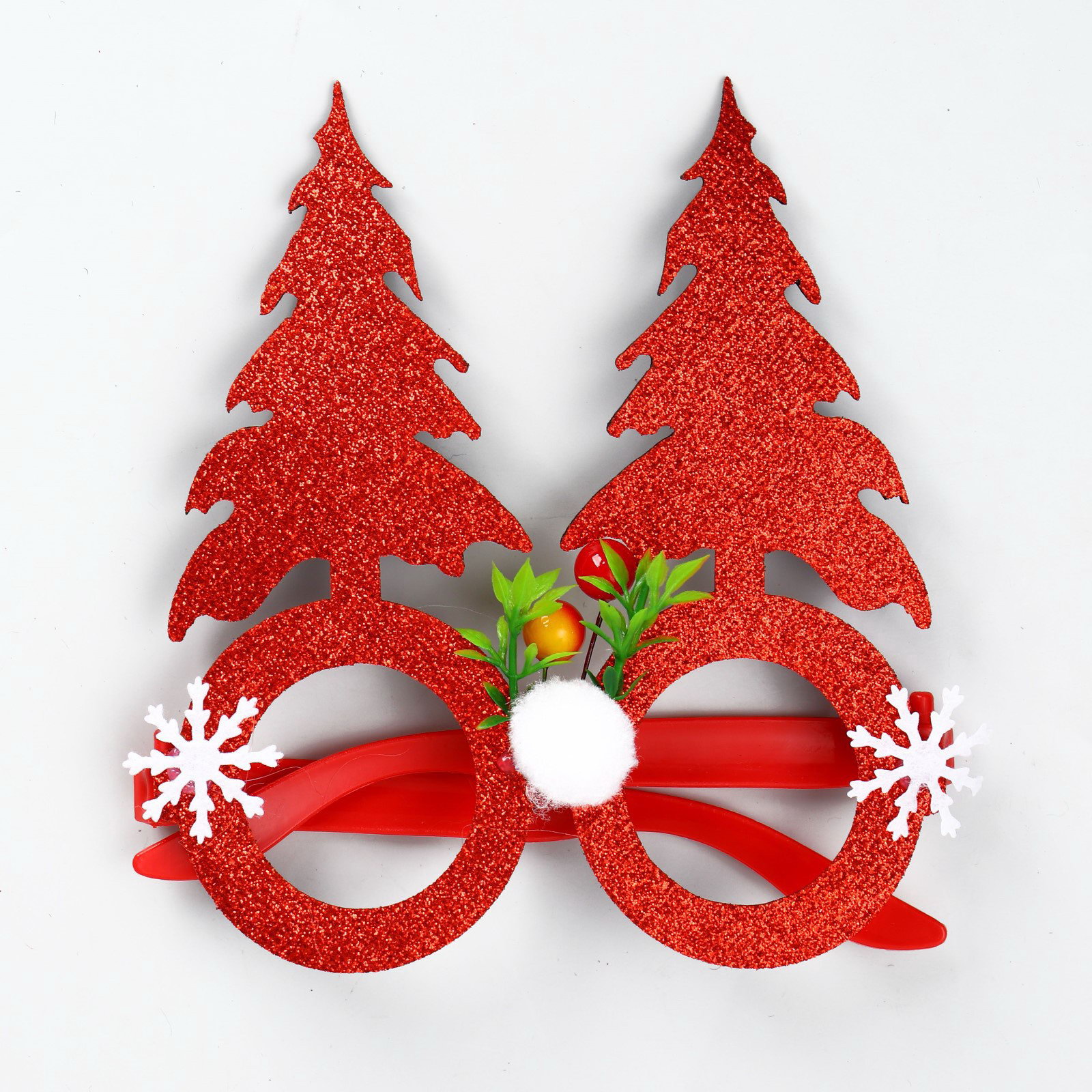 Очки карнавальные новогодние "Ёлочки", цвет красный, 14x15x1 см., Китай