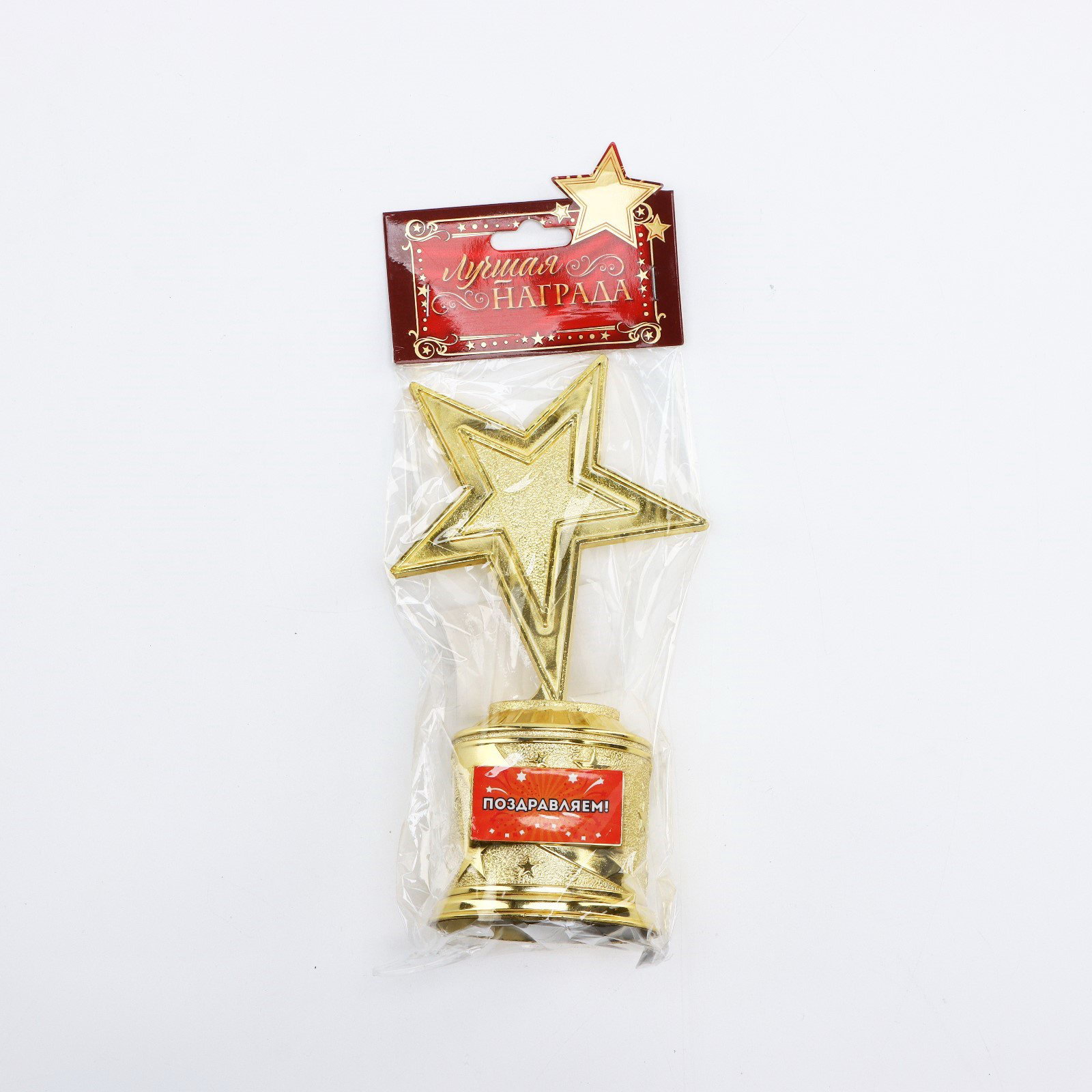 Кубок "Поздравляем", наградная фигура звезда, золото, пластик, 16 см, 8.5x6x16 см., Сима-ленд, Китай