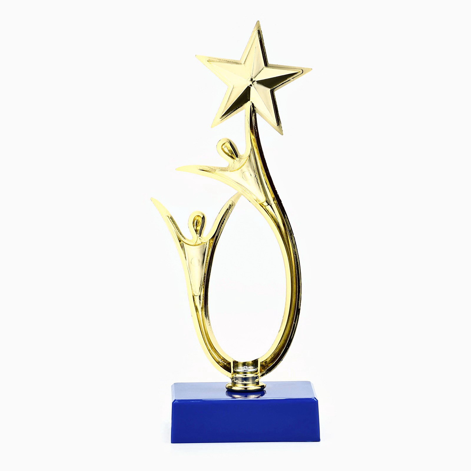Кубок, наградная фигура под нанесение "Человек со звездой", золото, подставка пластик синяя, 18x6x6 см, 6.3x6.2x17.4 см., Сима-ленд, Китай