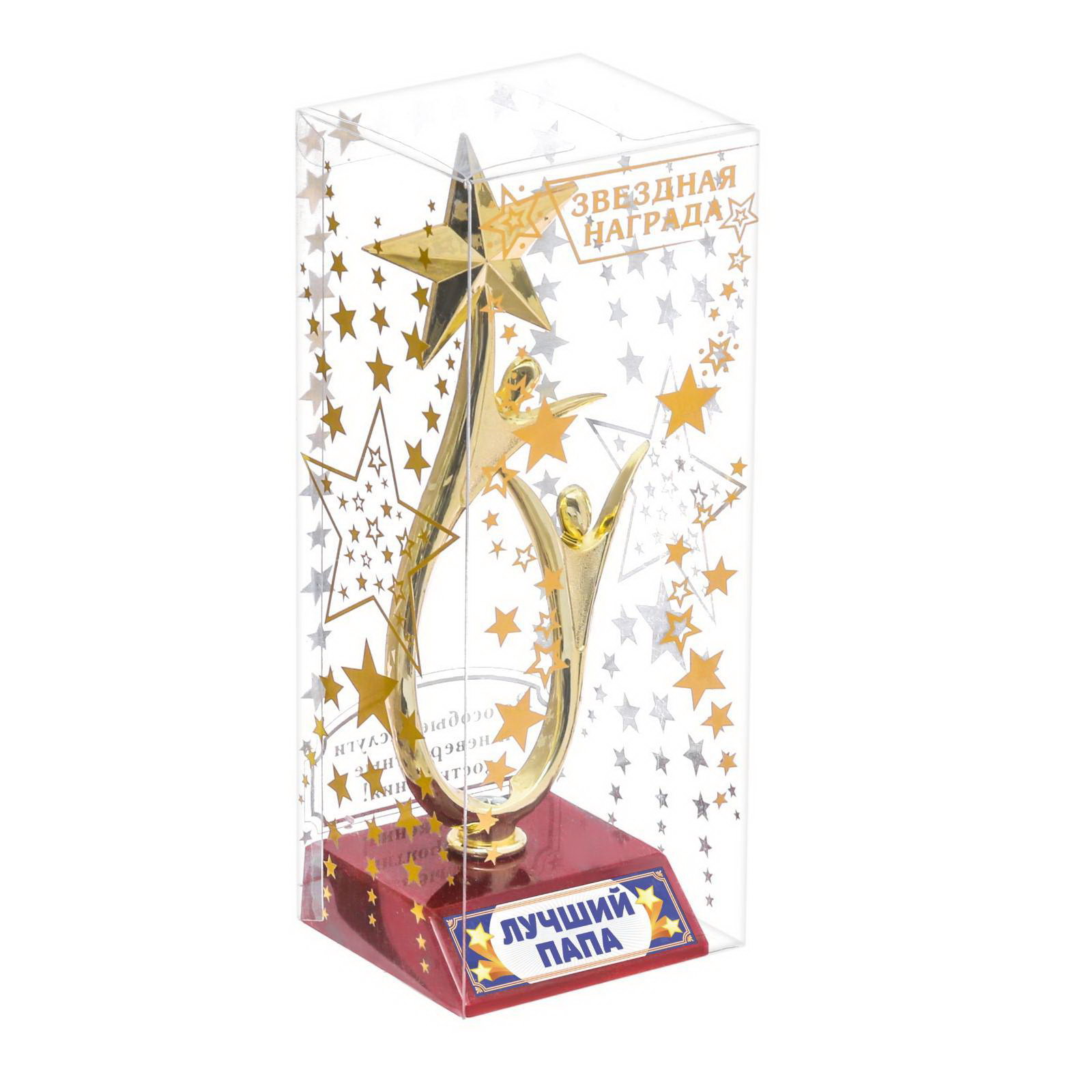 Кубок "Лучший папа", наградная фигура, золото, пластик, 18 см, 6.3x6.2x17.4 см., Сима-ленд, Китай