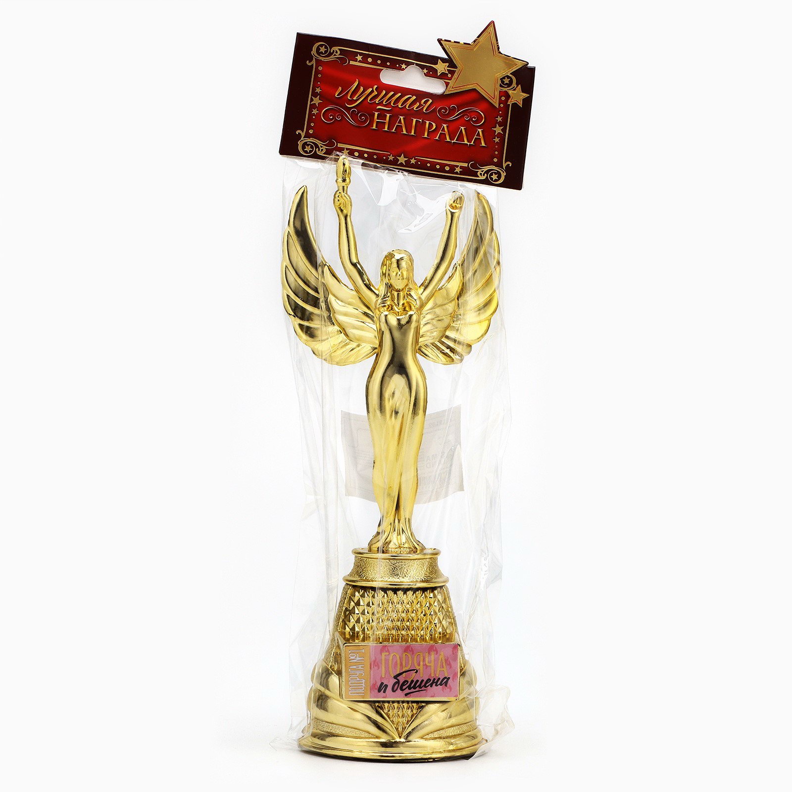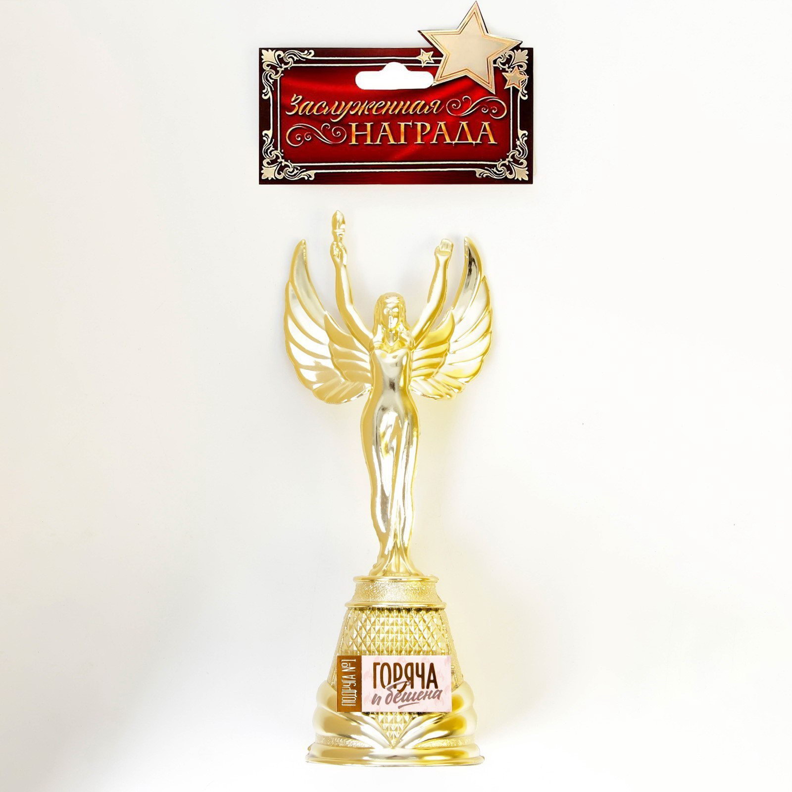 Кубок наградная фигура Ника "Горяча и бешена", пластик, золото, 19.5 x 7.3 см, 7.3x6x19.5 см., Сима-ленд, Китай