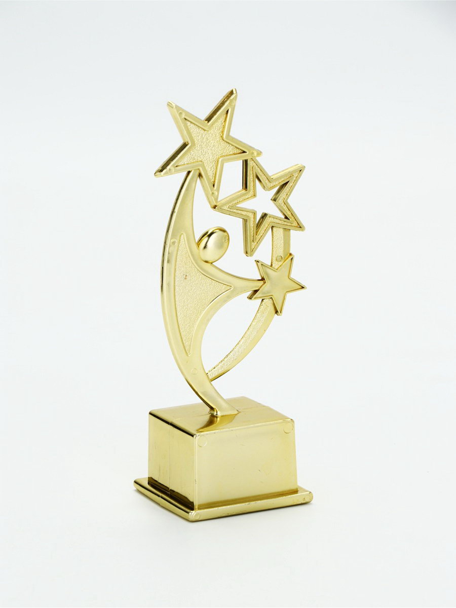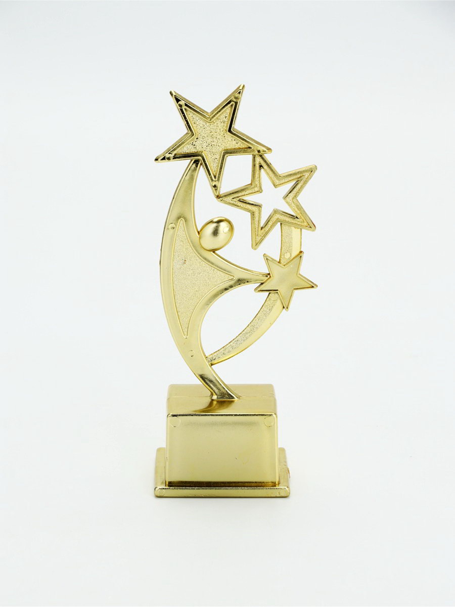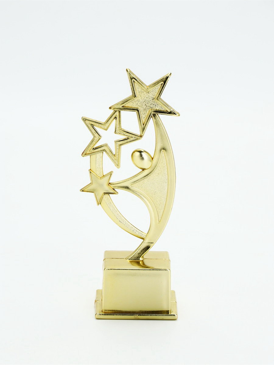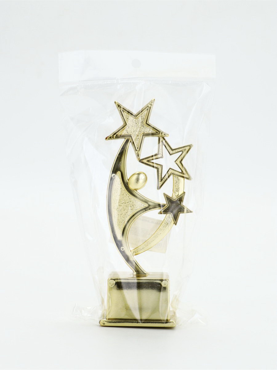 Кубок под нанесение "Человек со звёздами", наградная фигура, золото, пластик, 7.5x7.5x21.5 см., Сима-ленд, Китай