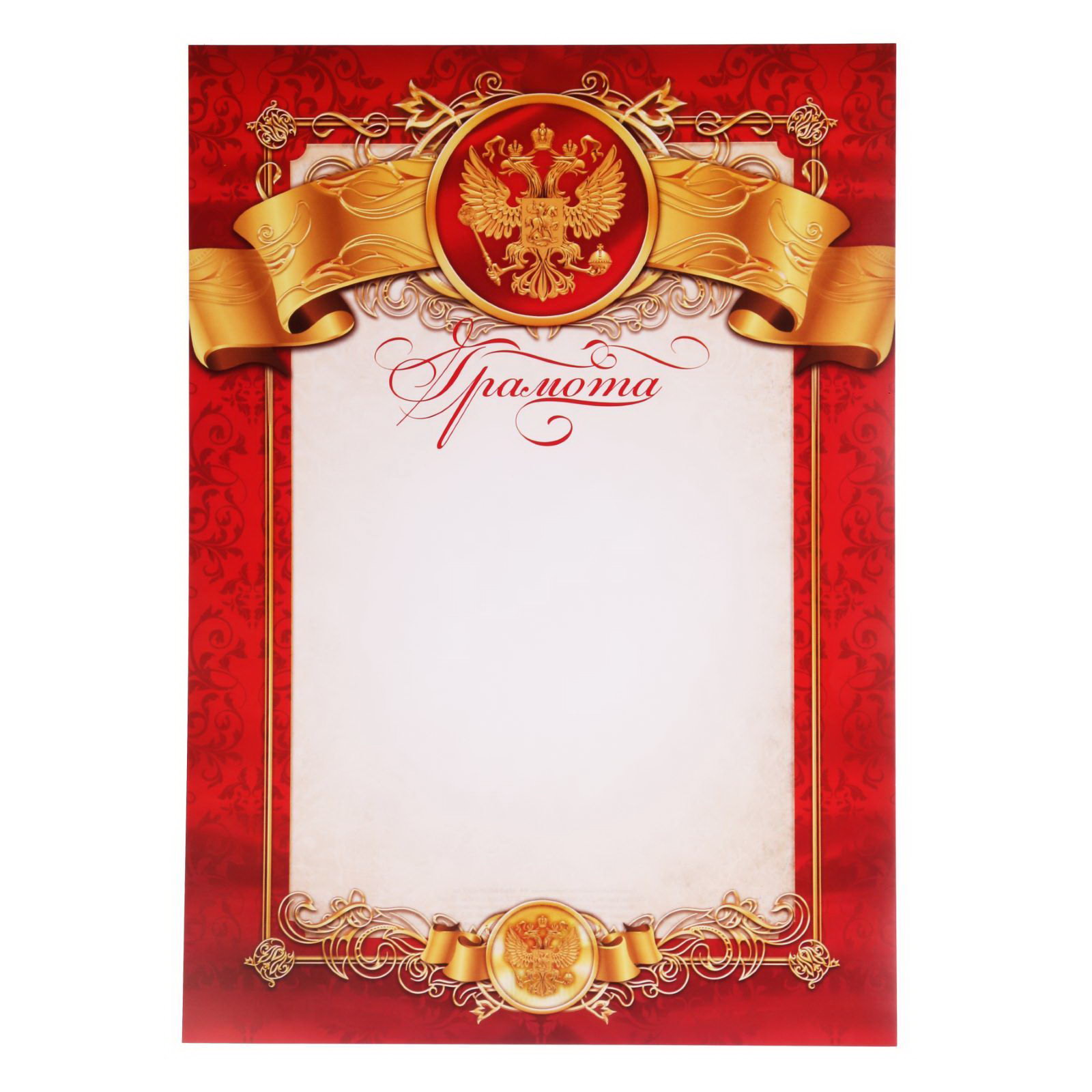 Грамота А4 классическая, Символика РФ, красная 157 г/?2, 21x29.7x0.1 см., Сима-ленд, Россия