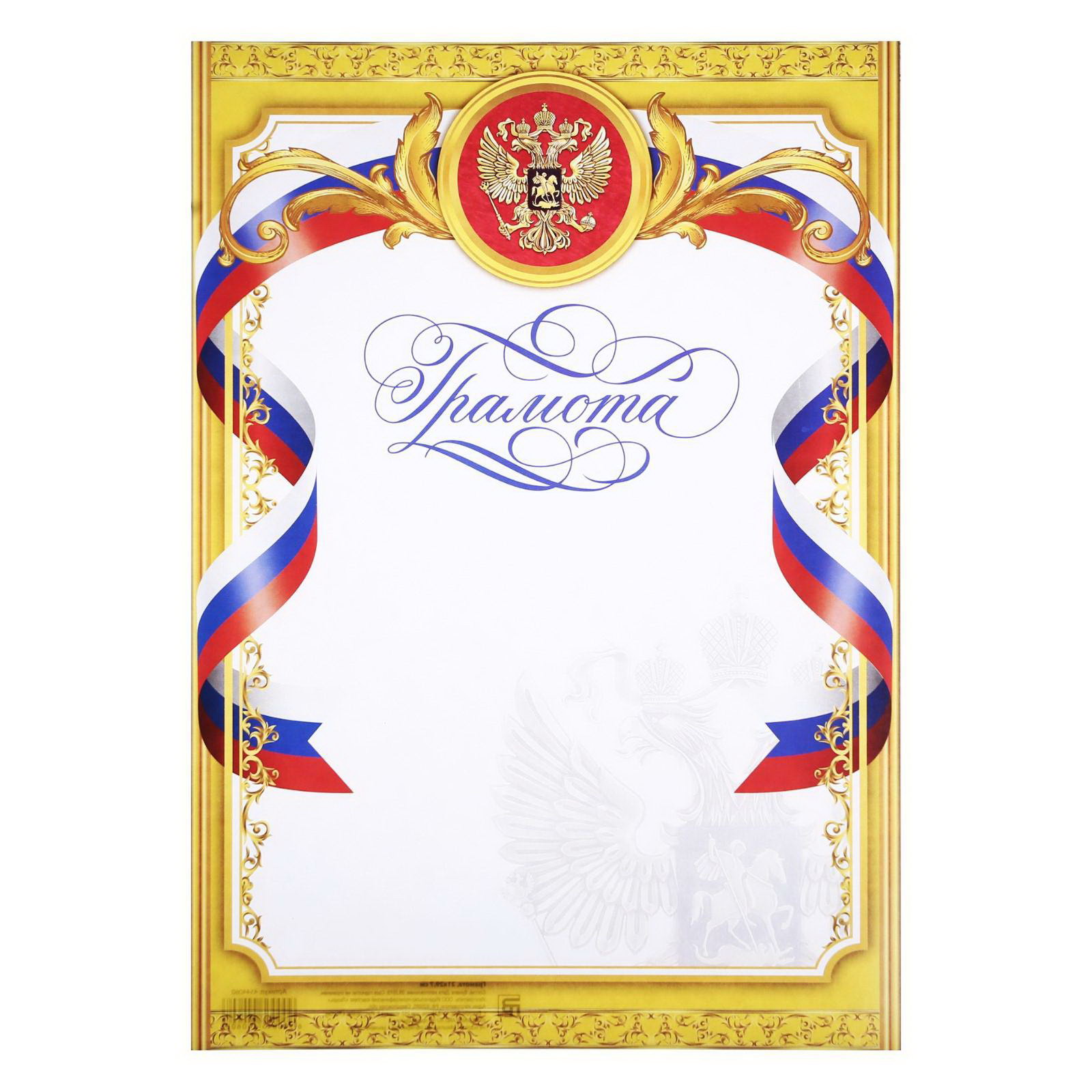 Грамота А4 классическая, Символика РФ, золото, 157 г/?2, 21x29.7x0.1 см., Сима-ленд, Россия