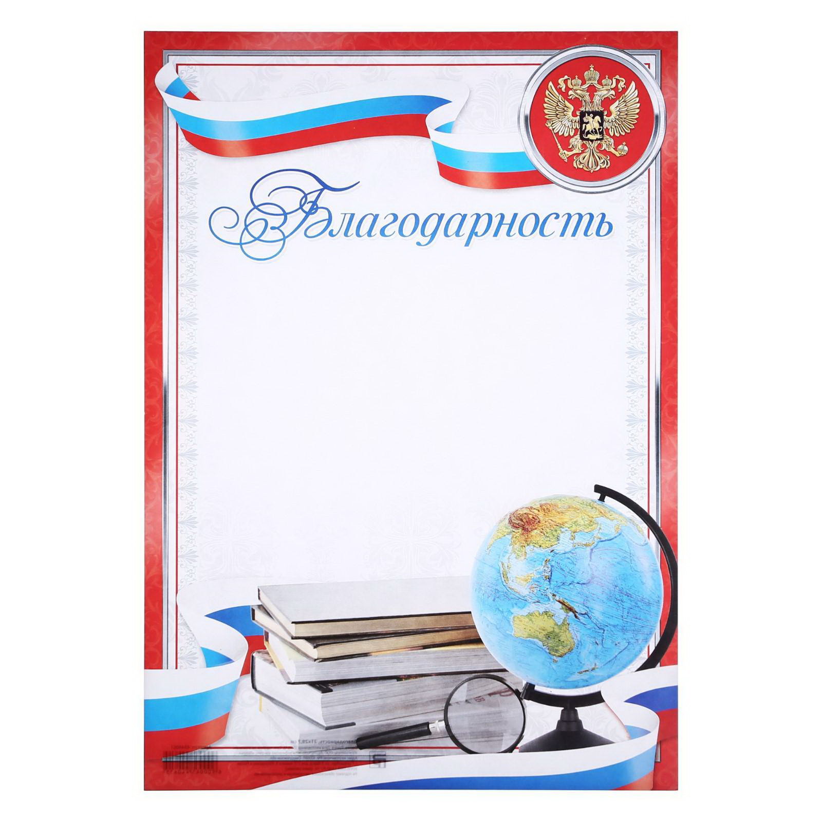 Благодарность А4 классическая, символика РФ, красная, 157 г/?2, 0.1x21x29.7 см., Сима-ленд, Россия
