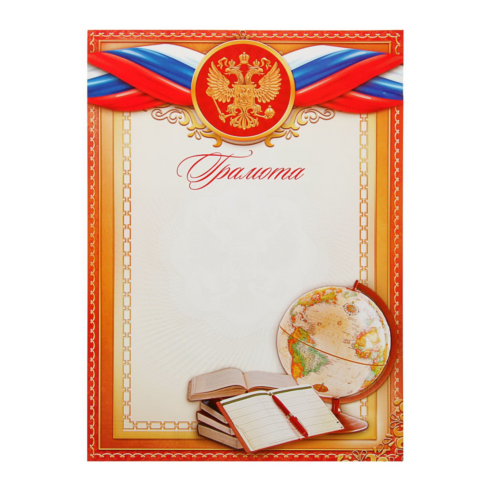 Грамота школьная, глобус, символика РФ, А4.157 г/?2, 0.1x21x29.5 см., Сима-ленд, Россия