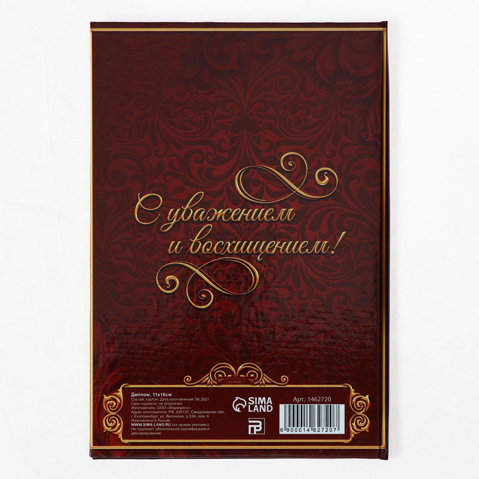 Диплом "Почетного юбиляра", 11x16 см, 16x0.2x11 см., Сима-ленд, Россия