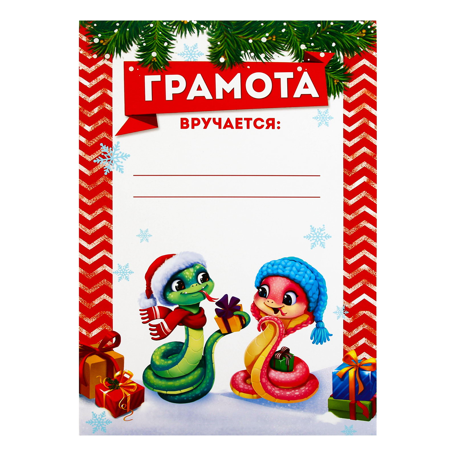 Грамота новогодняя "Парочка змейки", на Новый год, А4, Сима-ленд, Россия