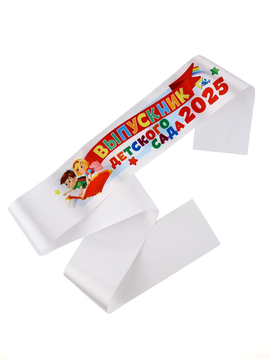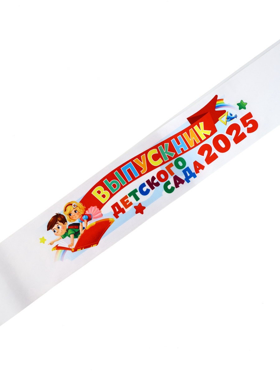 Лента на выпускной "Выпускник детского сада 2025", атласная с цветным нанесением, 140x10 см, 10x140x0.1 см., Сима-ленд, Китай