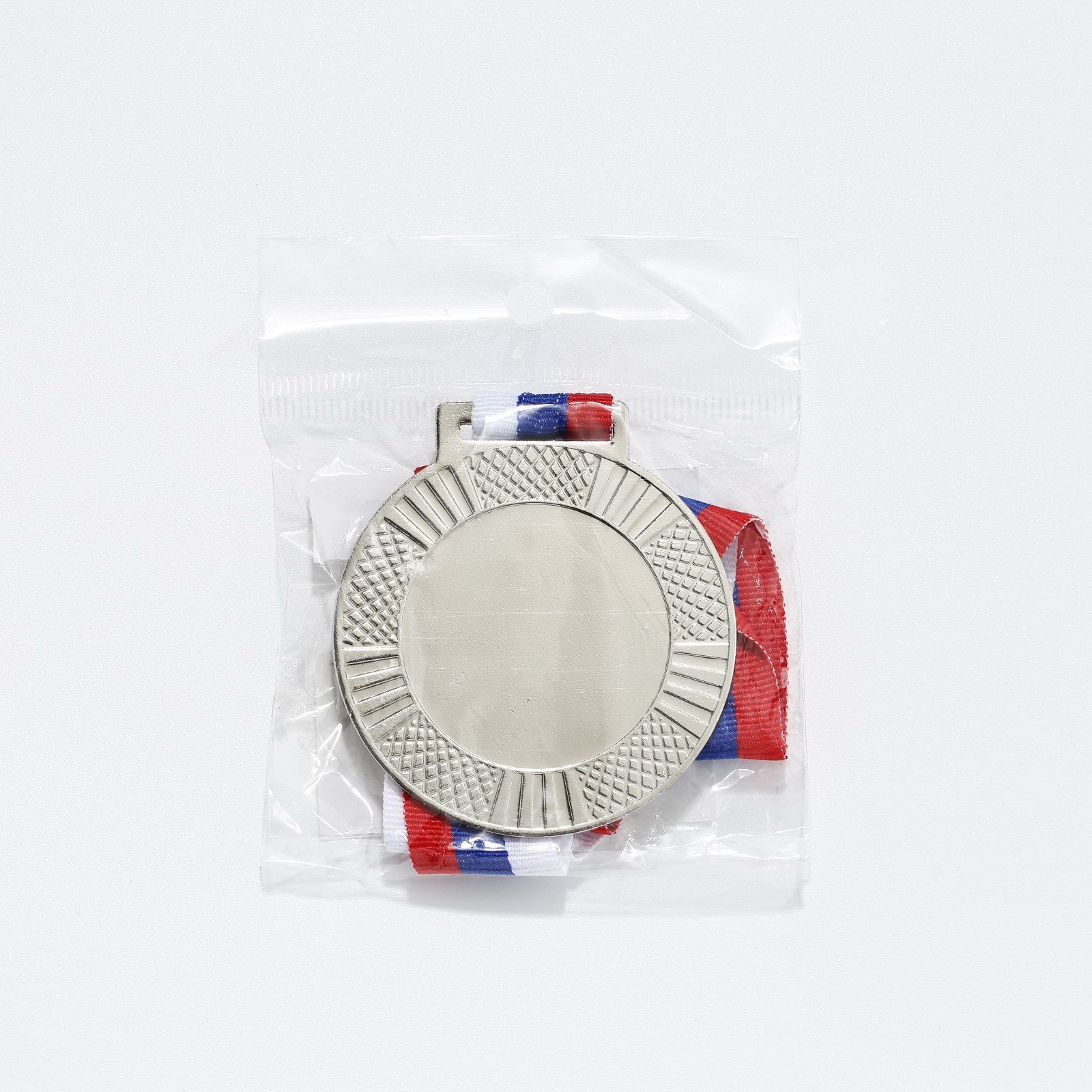 Медаль под нанесение серебро, d=6.5 см, с лентой, 650х650х6.5 см., Сима-ленд, Китай