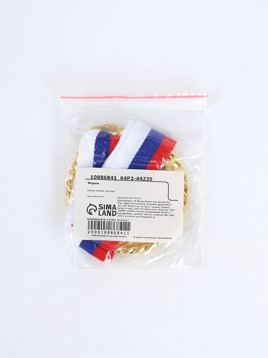 Размер упаковки: 7 x 7.5 x 1 см. tnved: 7117190000 Вид спорта: Универсальный Вид упаковки: Пакет Наличие ленты: Да Наличие символики РФ: Да Цвет: Золотистый | ||