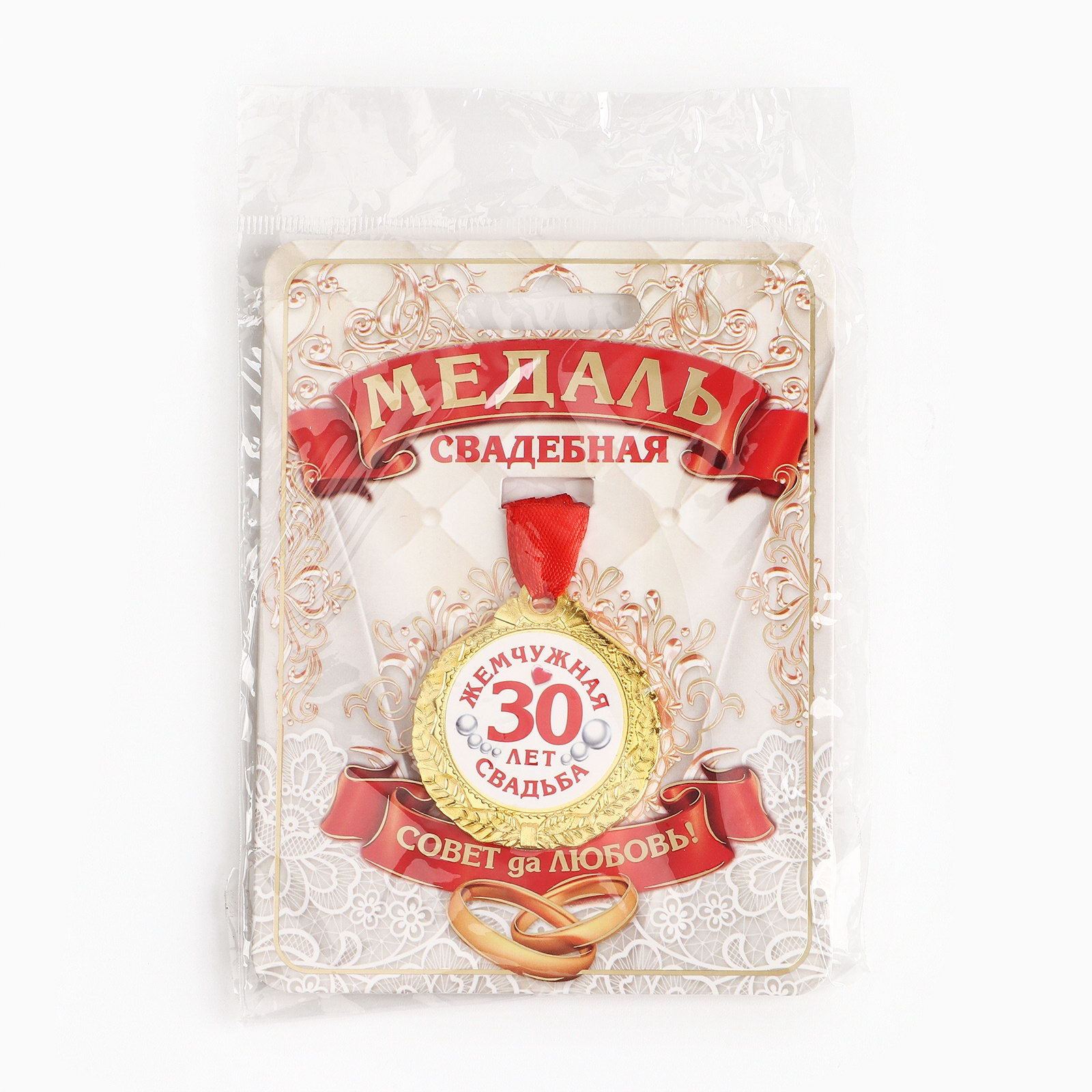 Медаль свадебная на открытке "30 лет жемчужная свадьба", d=4 см, 400х400х4 см., Сима-ленд, Китай