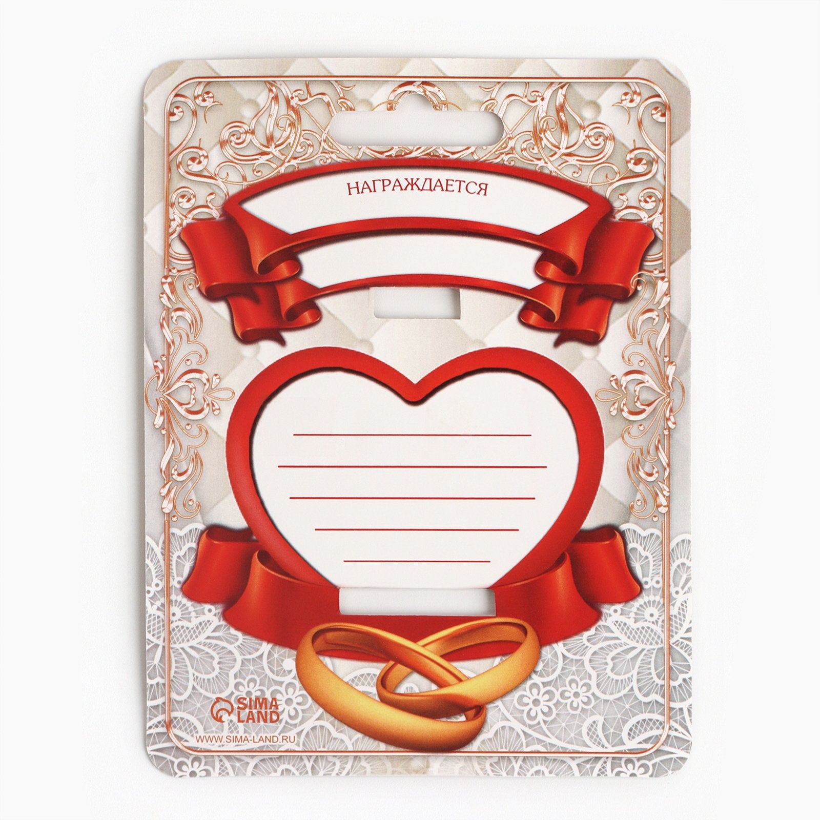 Медаль свадебная на открытке "5 лет деревянная свадьба", d=4 см, 400х400х4 см., Сима-ленд, Китай