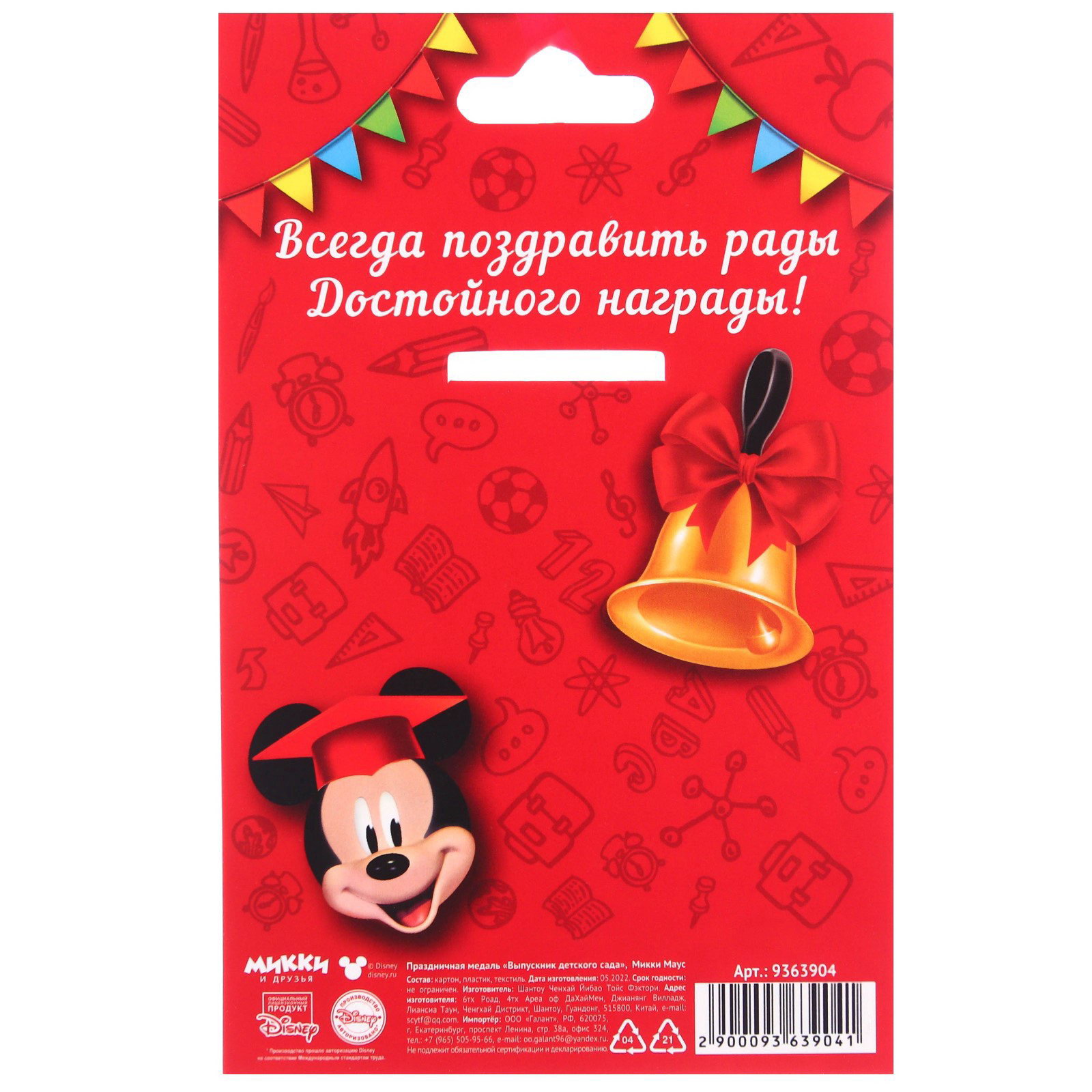 Медаль на выпускной "Выпускник детского сада", 5.6 см, Микки Маус, 63х63х15 см., Disney, Китай