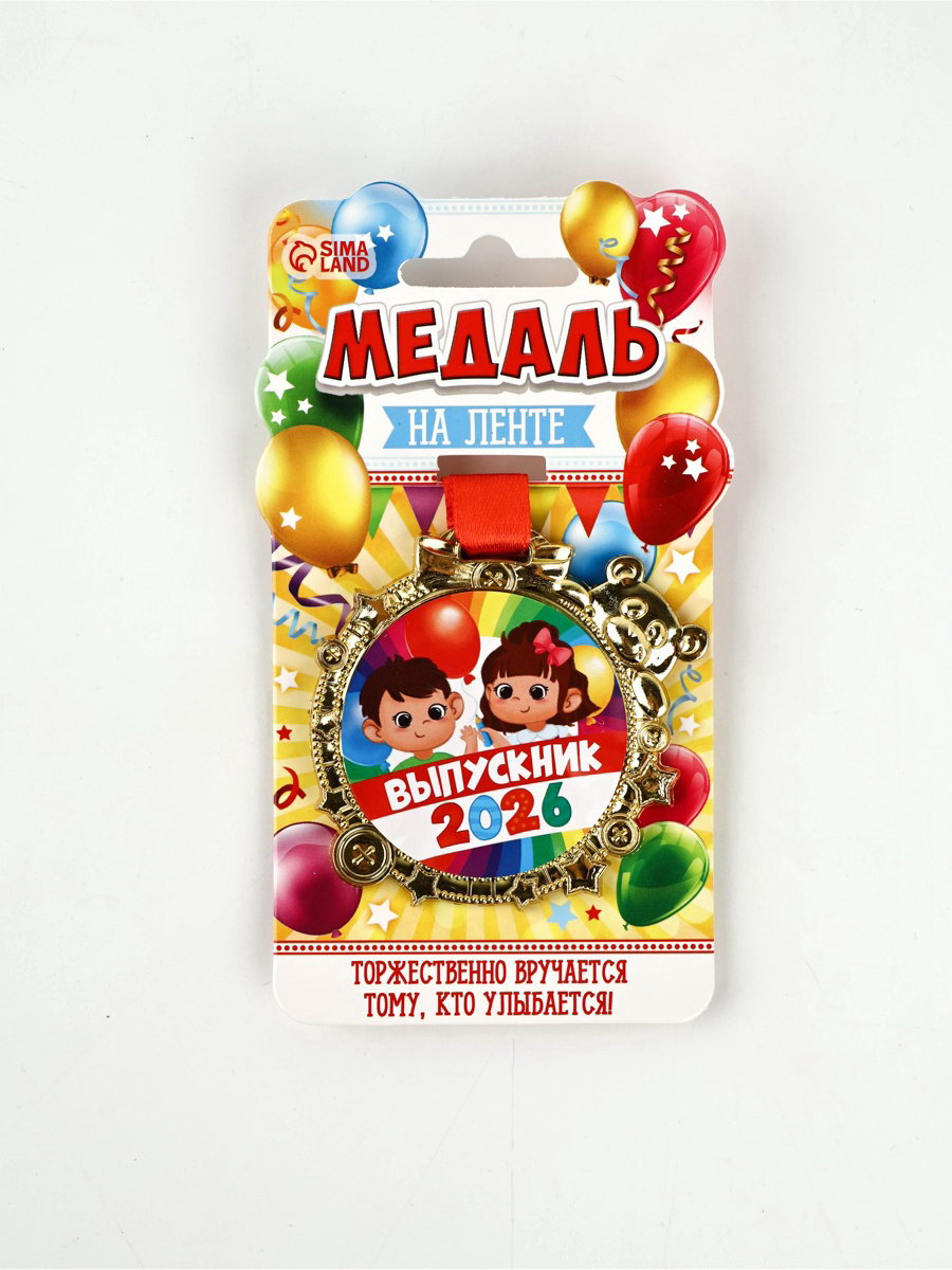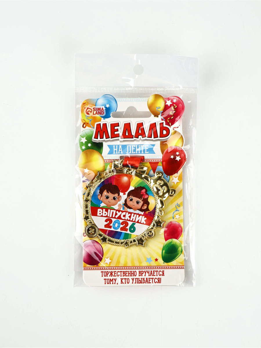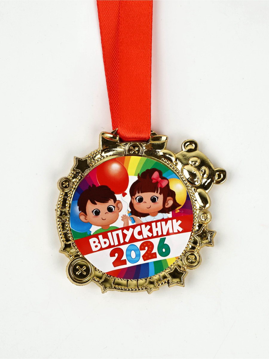 Медаль детская на выпускной "Выпускник 2026", 6.5x6.9 см, 69х69х6.9 см., Сима-ленд, Китай