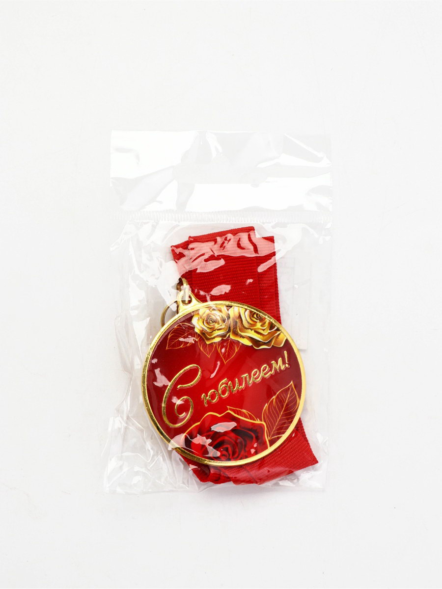 Медаль с уф-печатью "С юбилеем", диам. 5 см, золотая, с лентой, 500х500х0.2 см., Сима-ленд, Китай