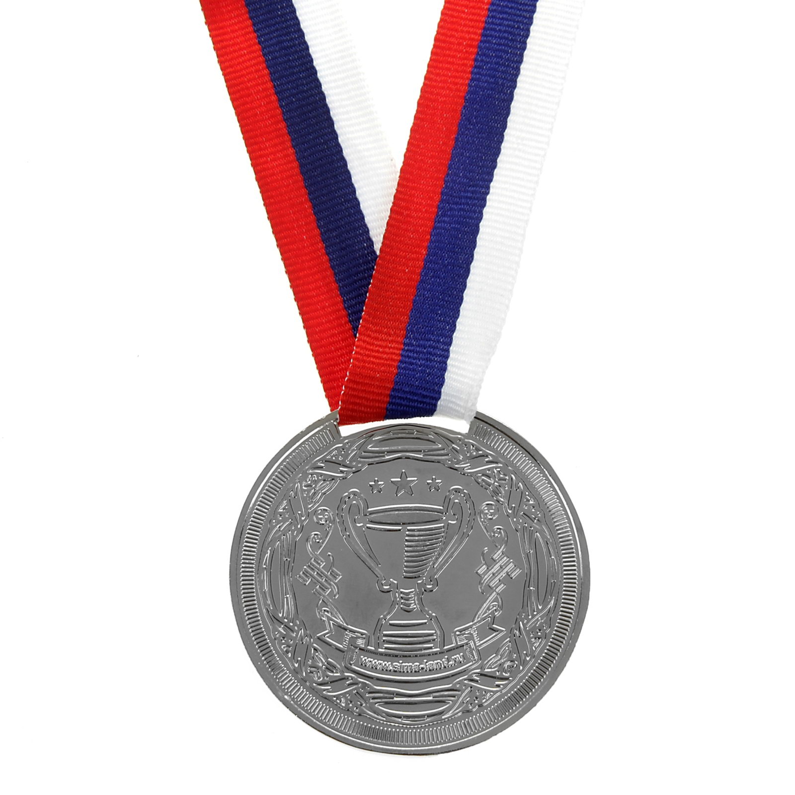 Медаль призовая серебро 013, d=5 см 2 место, с лентой, 500х500х5 см., Сима-ленд, Китай
