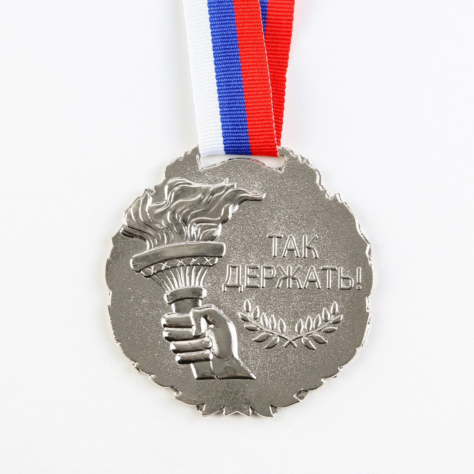 Медаль призовая "2 место" серебро, d=6.5 см, с лентой, 65х65х7 см., Сима-ленд, Китай