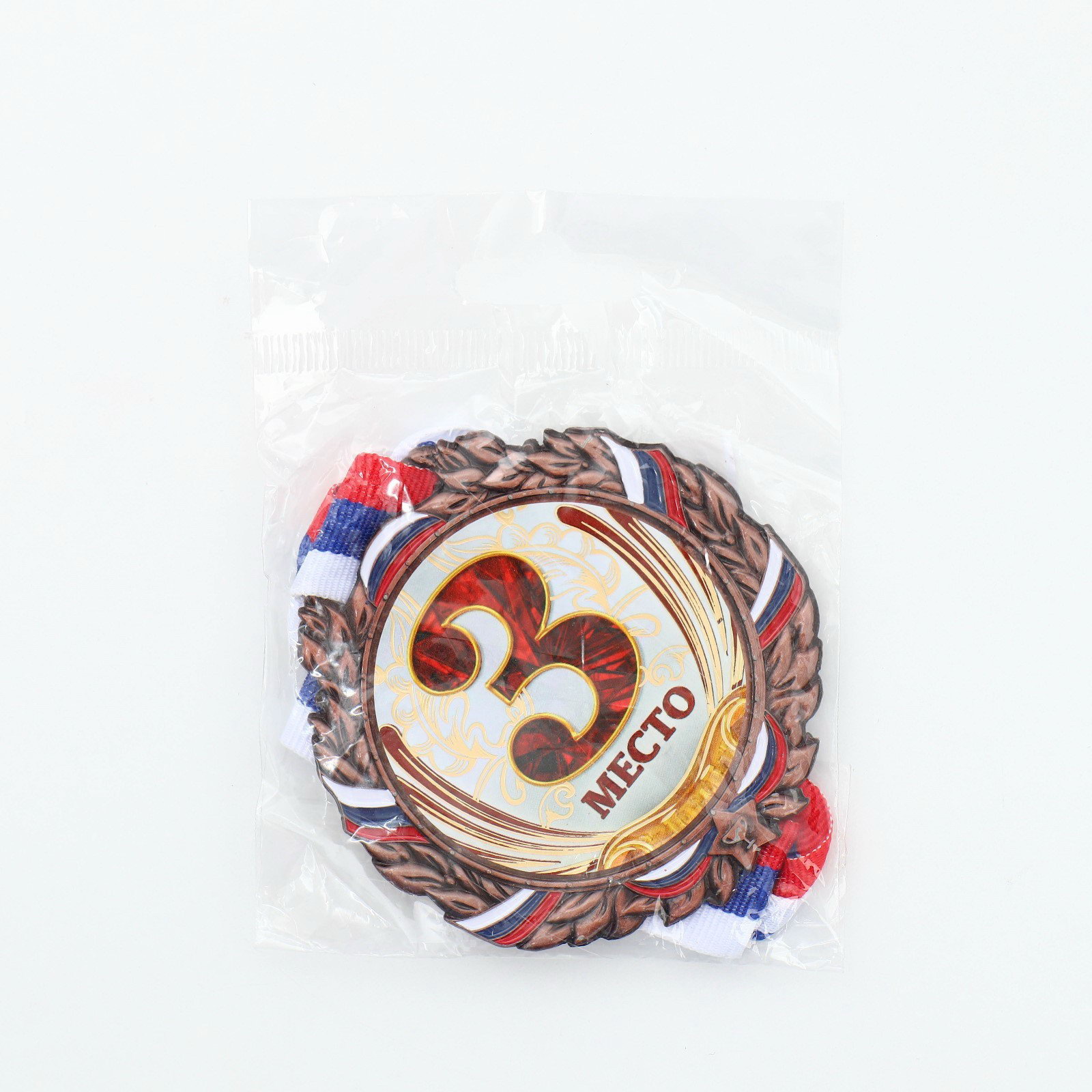 Медаль призовая бронза, d=6.5 см, 3 место, с лентой, 0.2x7x7 см., Сима-ленд, Китай