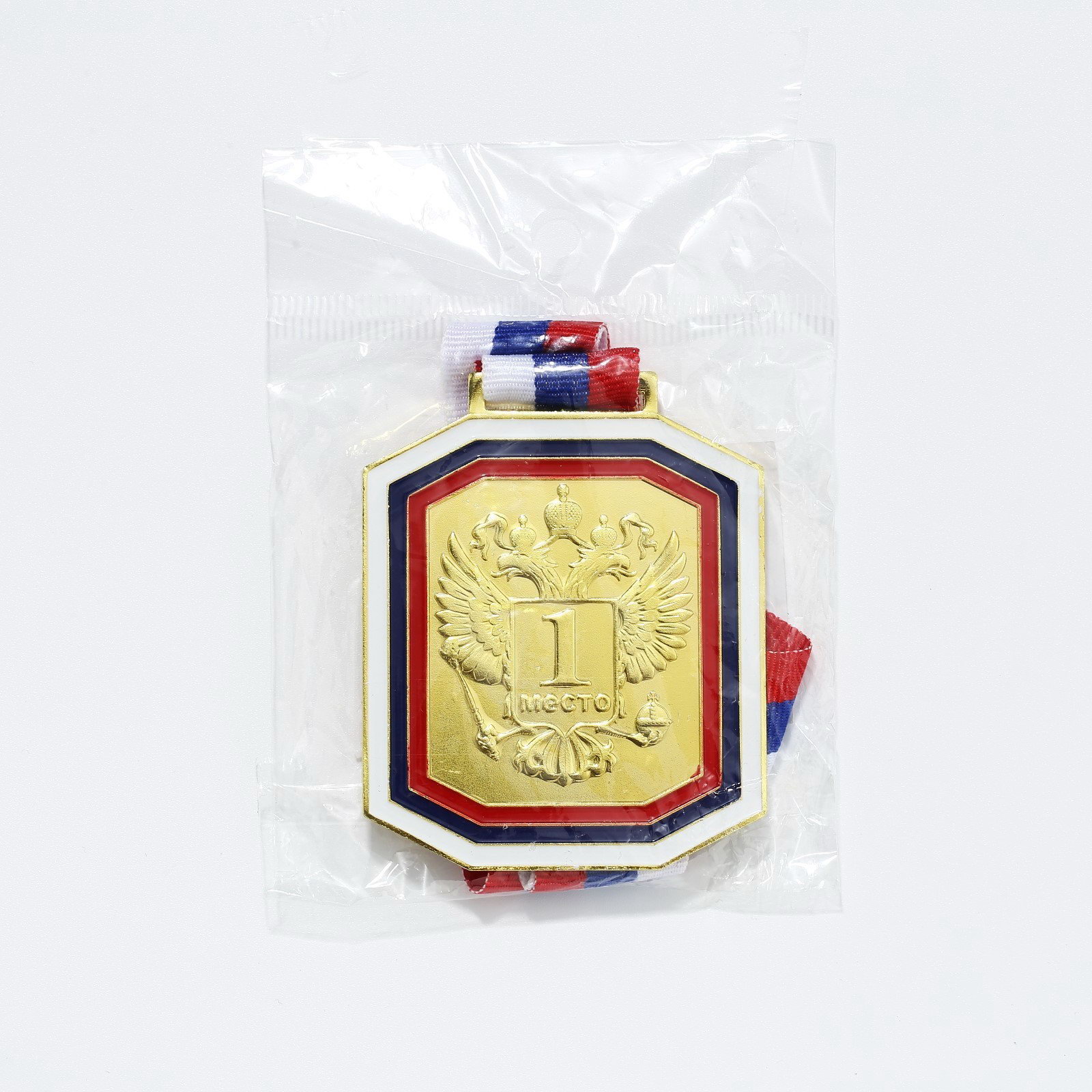 Медаль призовая золото, 1 место, с лентой, 6x7 см, 0.2x6x5 см., Сима-ленд, Китай